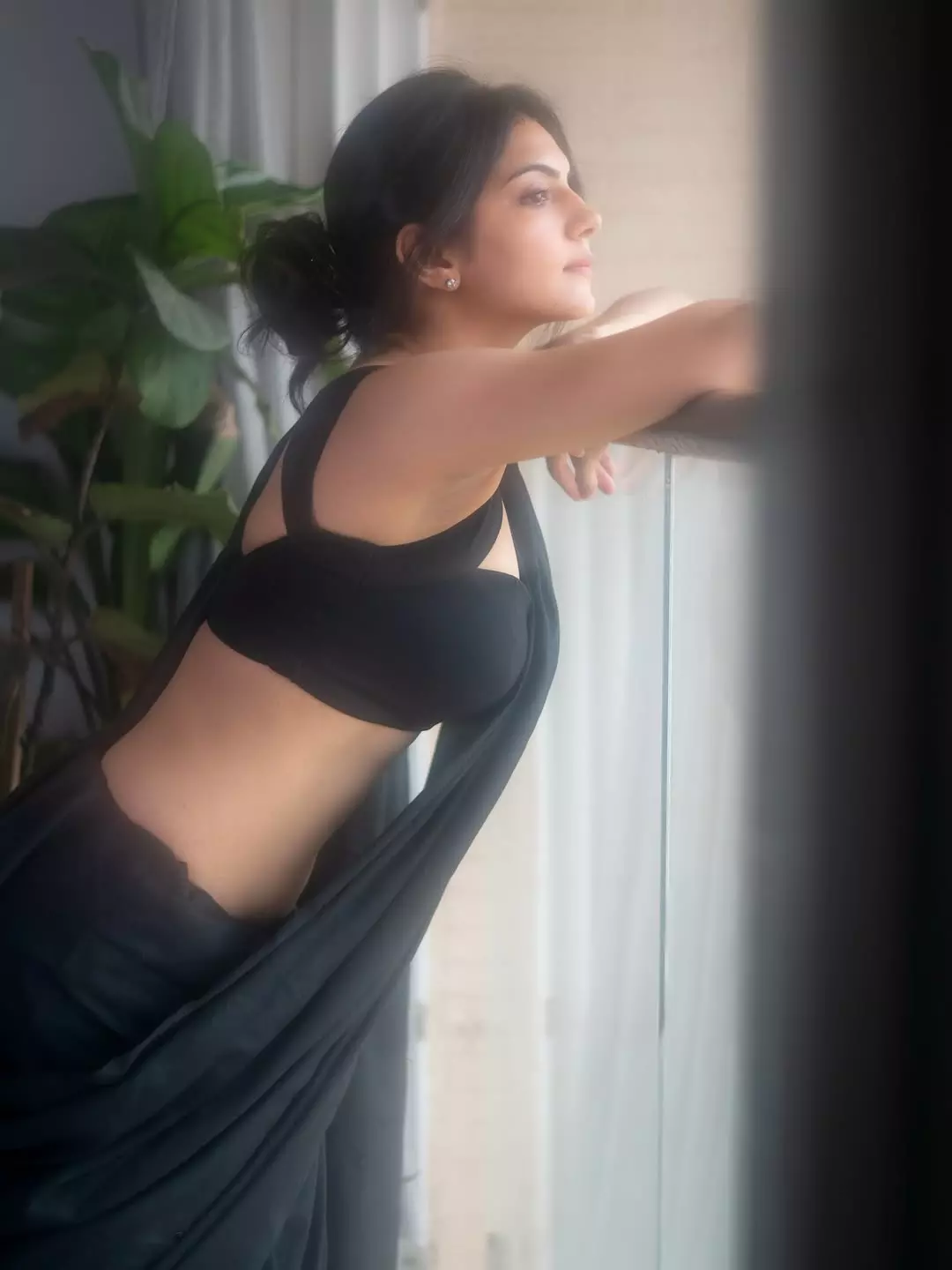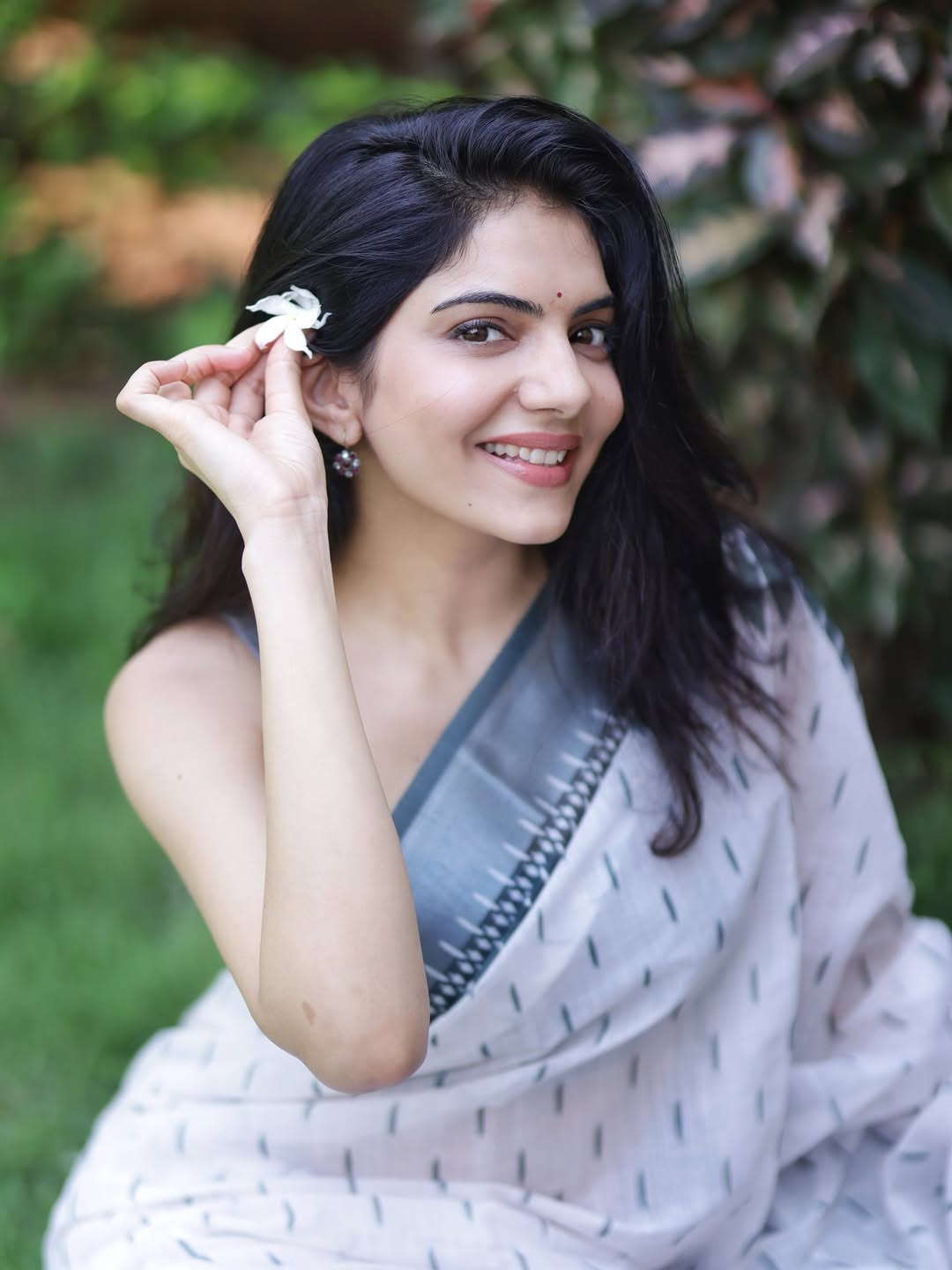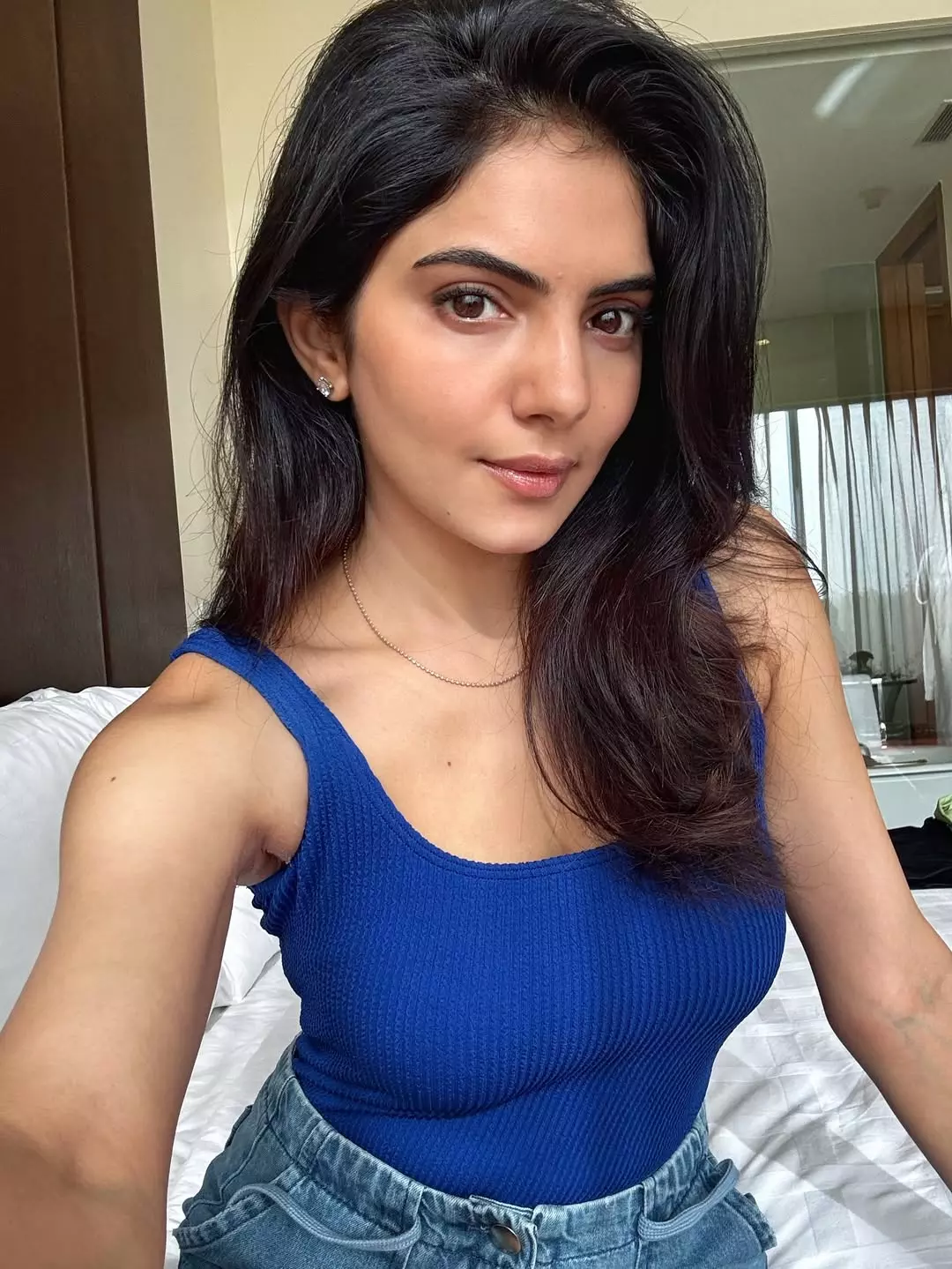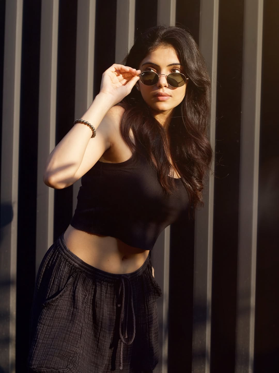 Misha Narang looks serene and stunning in this elegant indoor photoshoot, posing gracefully by the window in a chic maroon ribbed crop top paired with a flowing white pleated skirt. With her long wavy hair cascading down and a soft, closed-eye expression, the actress radiates quiet confidence and natural beauty in 2026.