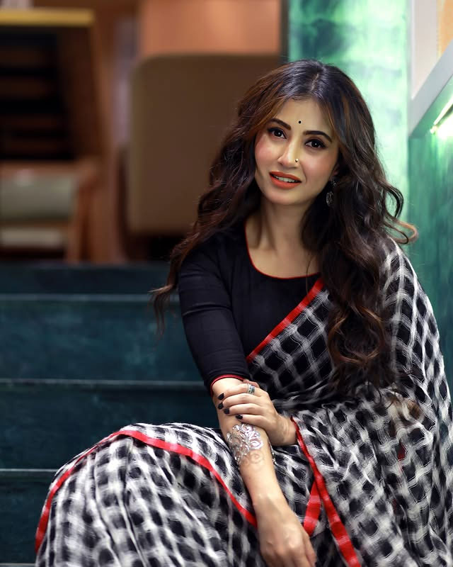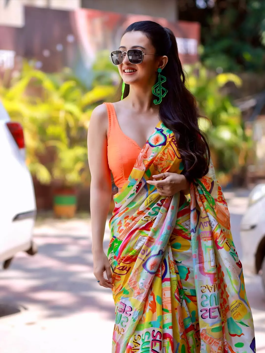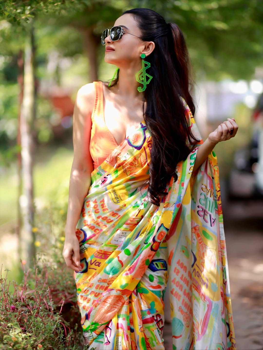 By: Priya Chowdhary Nuthalapti | 15 Oct 2025 6:21 PM ISTMonami Ghosh, one of Bengal’s most stylish and talented actresses, has once again impressed her followers with her latest Instagram post. In the photo, Monami is seen wearing a vibrant printed saree with colorful designs paired with a sleeveless orange blouse. She completed her look with large green musical-note earrings and oversized sunglasses. Her caption reas, “Isliye chasma pahan liya.”