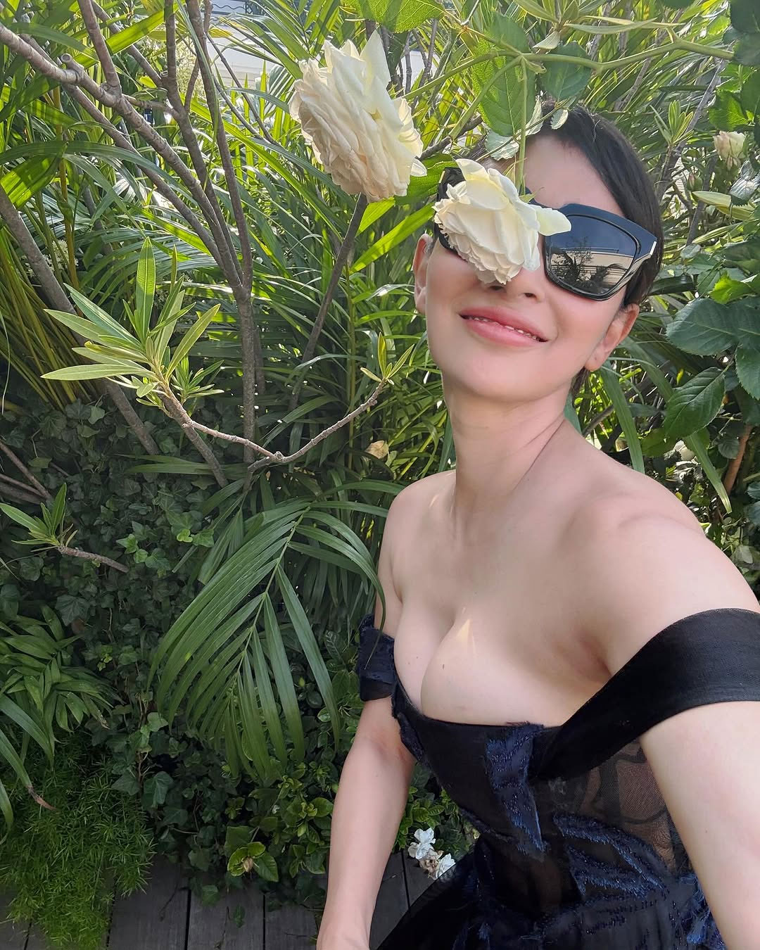 In these stunning images, she blooms irrespective of the surroundings—radiating effortless grace amid lush greenery and vibrant blooms in one