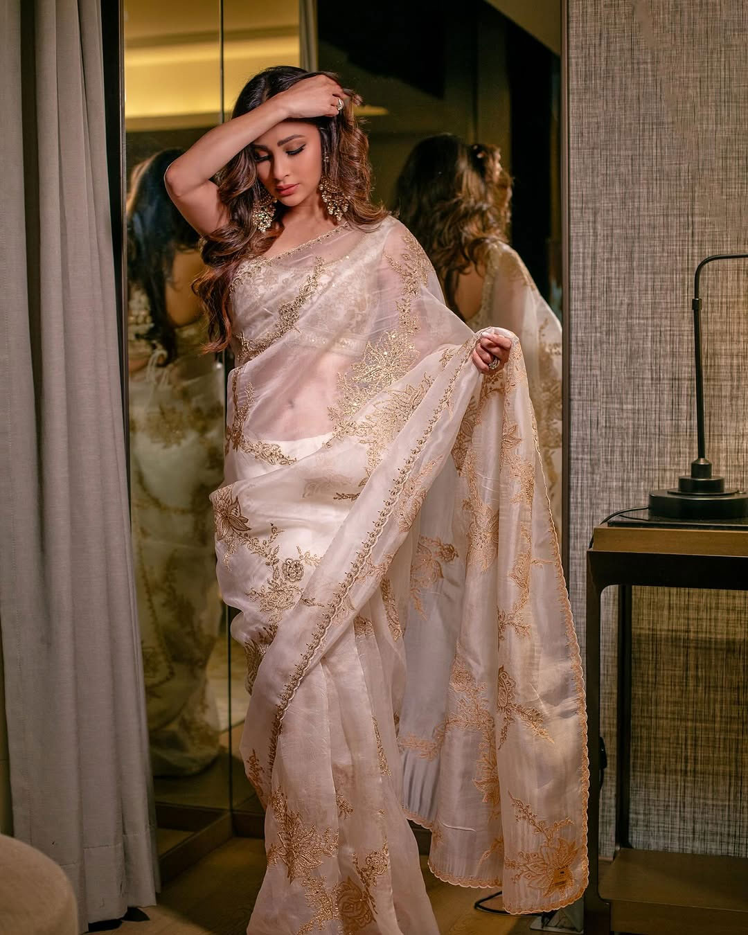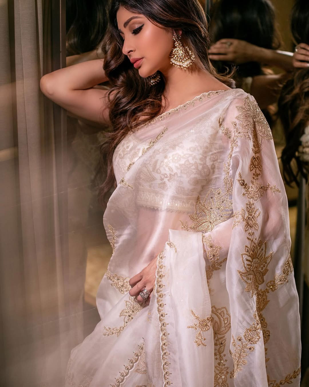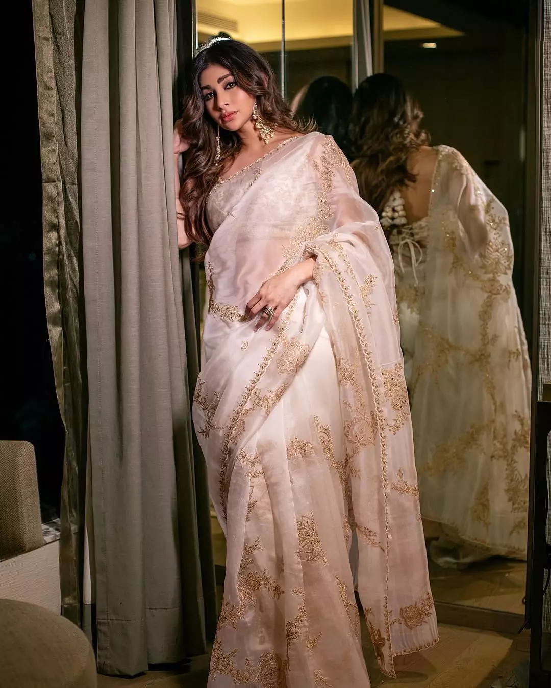 By: Tupaki Desk | 28 April 2025 8:28 PM ISTHave you seen Mouni Roy’s latest picture? She looks straight out of a fairytale! Draped in a delicate white and gold saree, Mouni posed gracefully beside a curtain, her reflection shining behind her. With beautiful curls, golden earrings, and soft makeup, doesn’t she look like a character from a beautiful novel? Her caption too feels like a dreamy thought: "If I were a girl in a book this ll all be so easy.." – and honestly, we couldn't agree more!