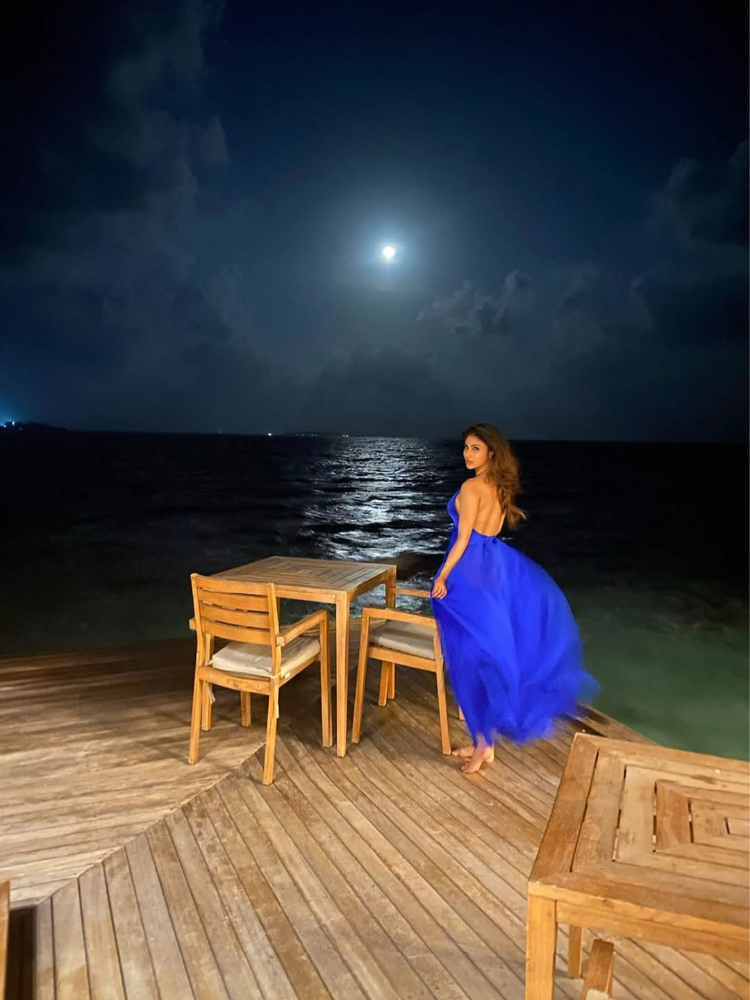 Mouni Roy Mesmerizes in Moonlit Beach Photo