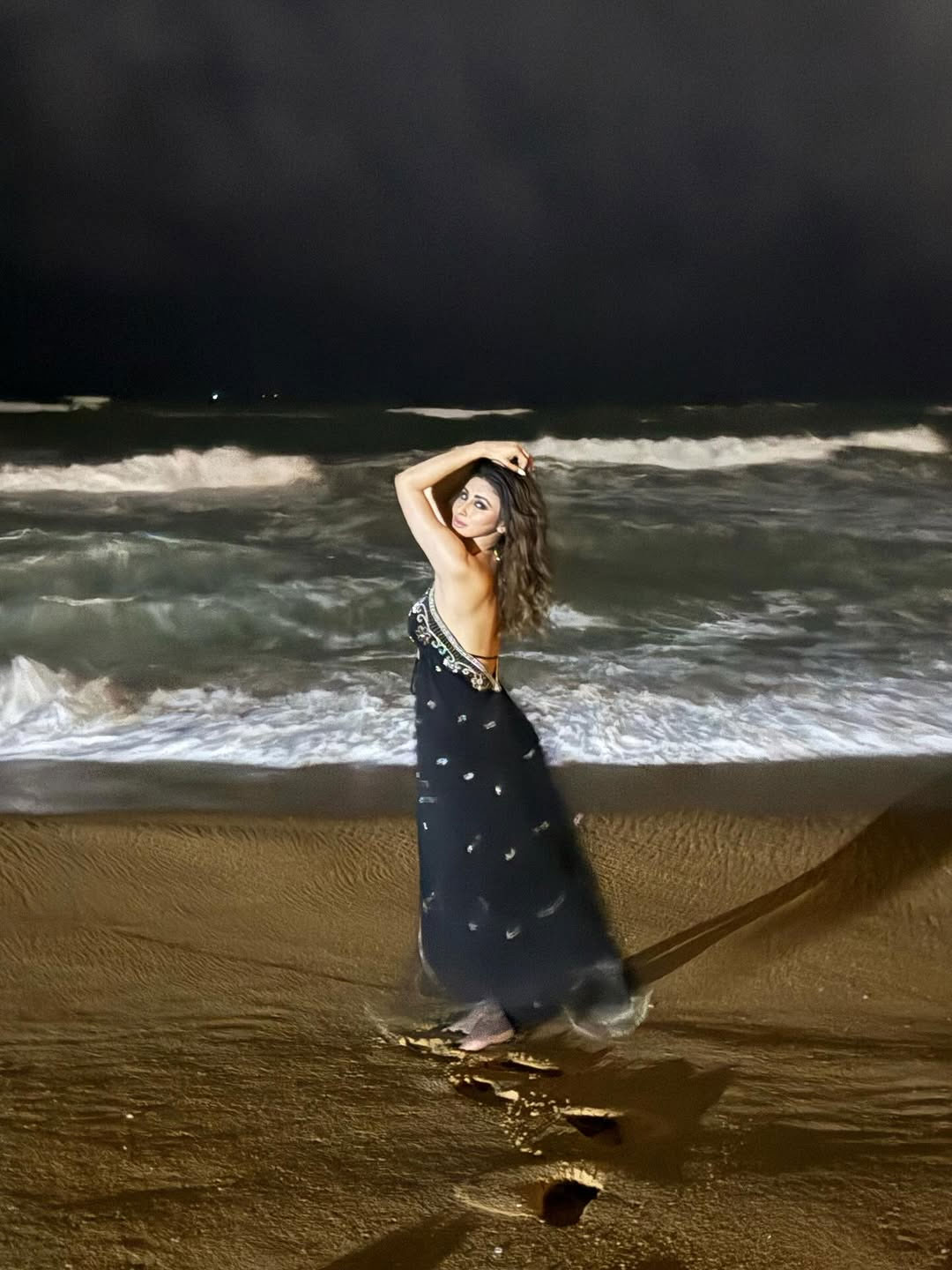 By: Tupaki Desk | 23 Jun 2025 6:04 PM ISTActress Mouni Roy recently captivated her followers on Instagram with a dreamy night-time beach photo accompanied by the serene melody "Moon River" by Audrey Hepburn. In the snapshot, she’s seen gracefully posing in a flowing black gown as the waves gently hit the shore behind her. Her caption reads, “It’s the moon that moves me, otherwise the night sky is so obvious…”