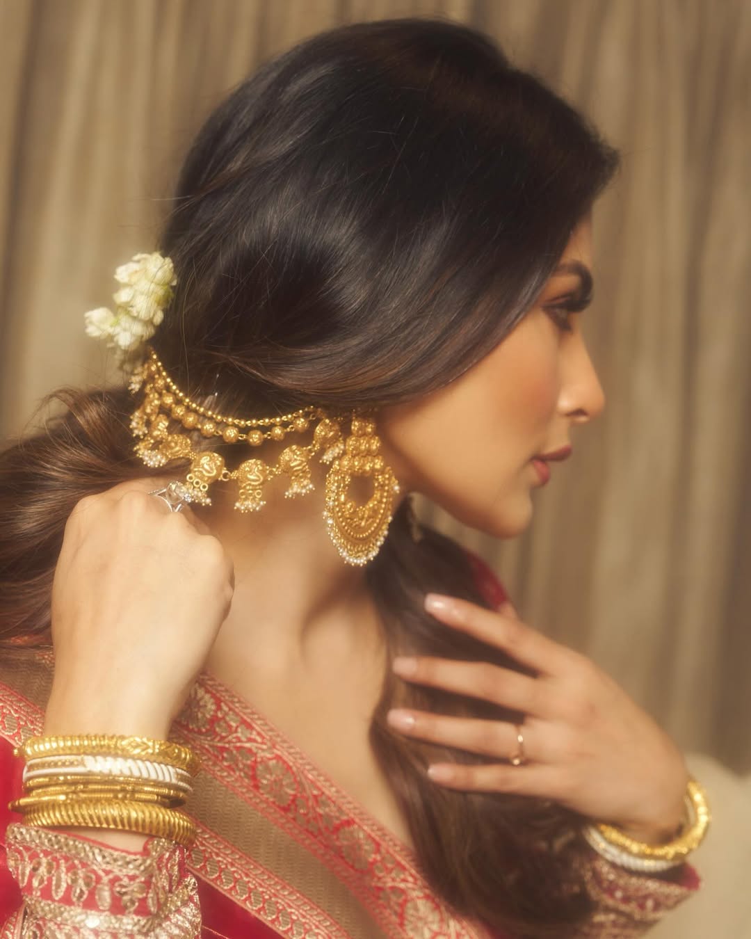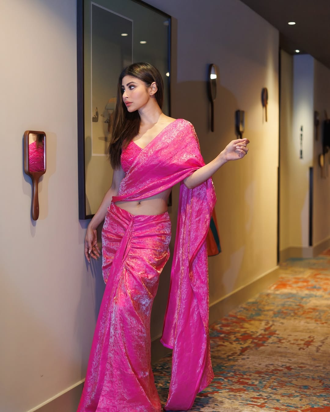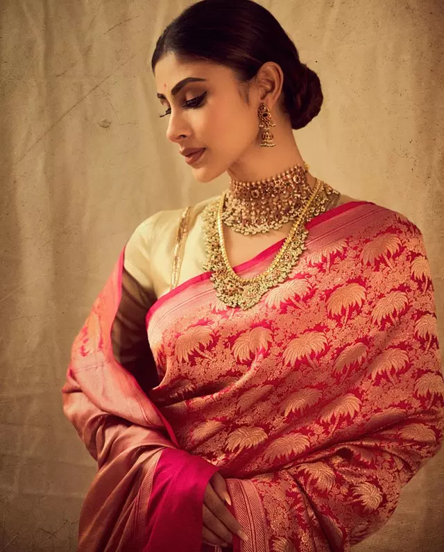 On the auspicious occasion of Maha Navami, Mouni Roy graced her Instagram followers with a serene and elegant image of herself draped in a Red saree. Accompanying the photo, she shared a heartfelt Bengali caption: