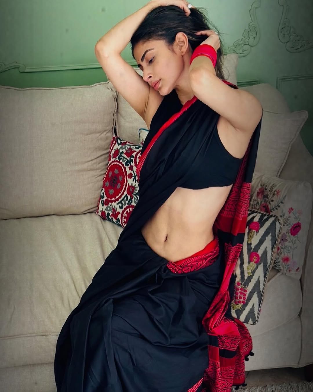 Confident in Western attire, Mouni carries off every look with ease. When it comes to sarees, she favors luxurious fabrics such as chiffon, georgette, and silk, draping them with graceful sophistication.