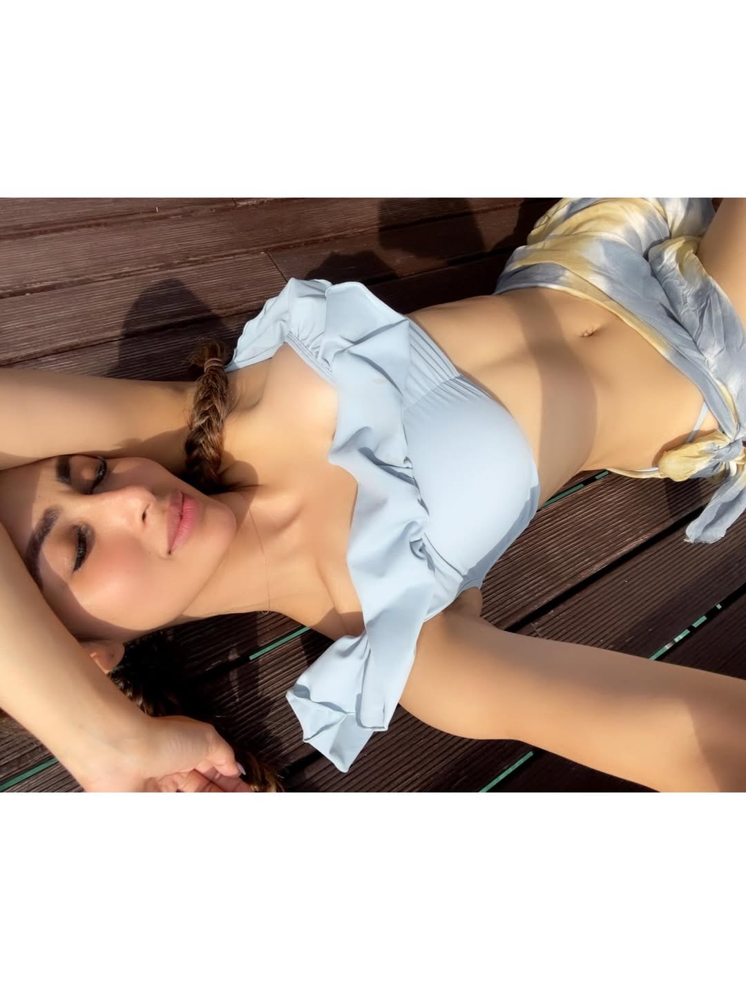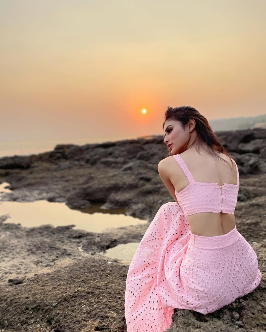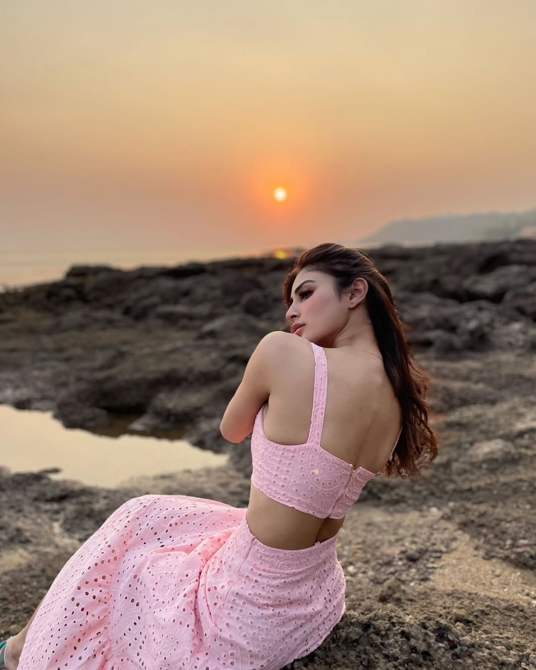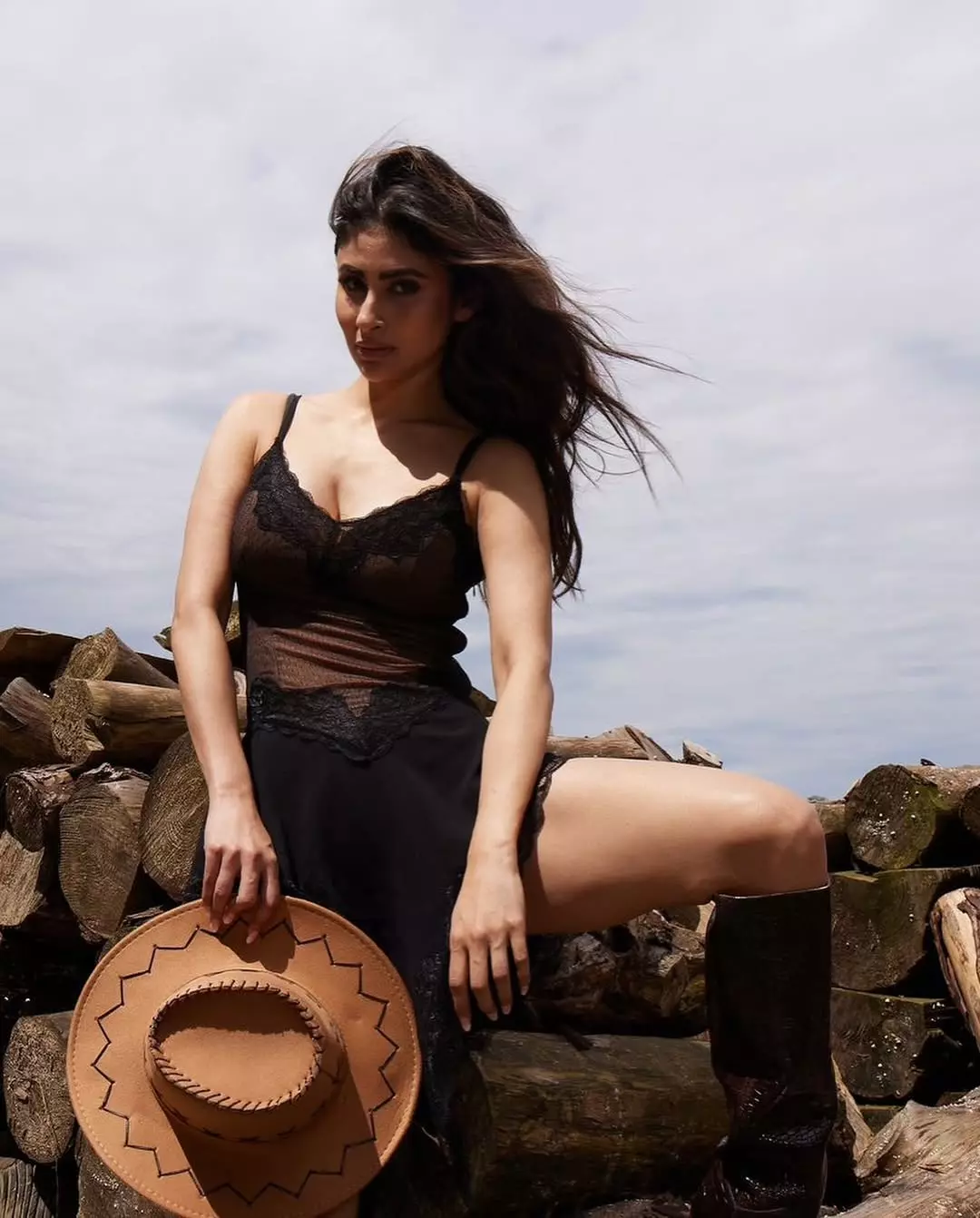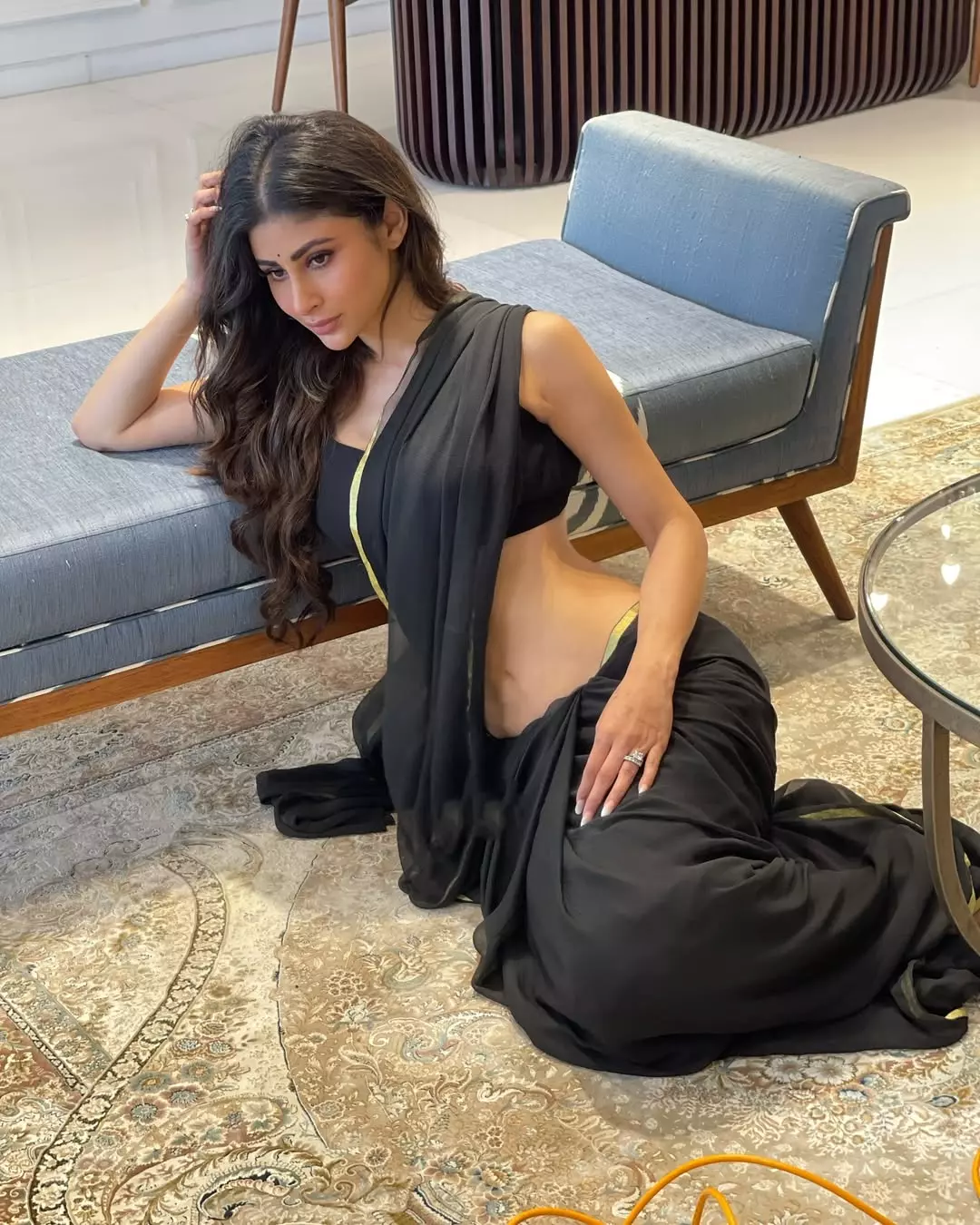 Her flawless makeup by @mukeshpatilmakeup highlights her features with a radiant glow, while @hairbysharda adds a touch of effortless elegance through soft, flowing waves. Together, the look whispers of old-world allure while embracing contemporary style — a reflection of Mouni’s own journey in cinema and fashion.