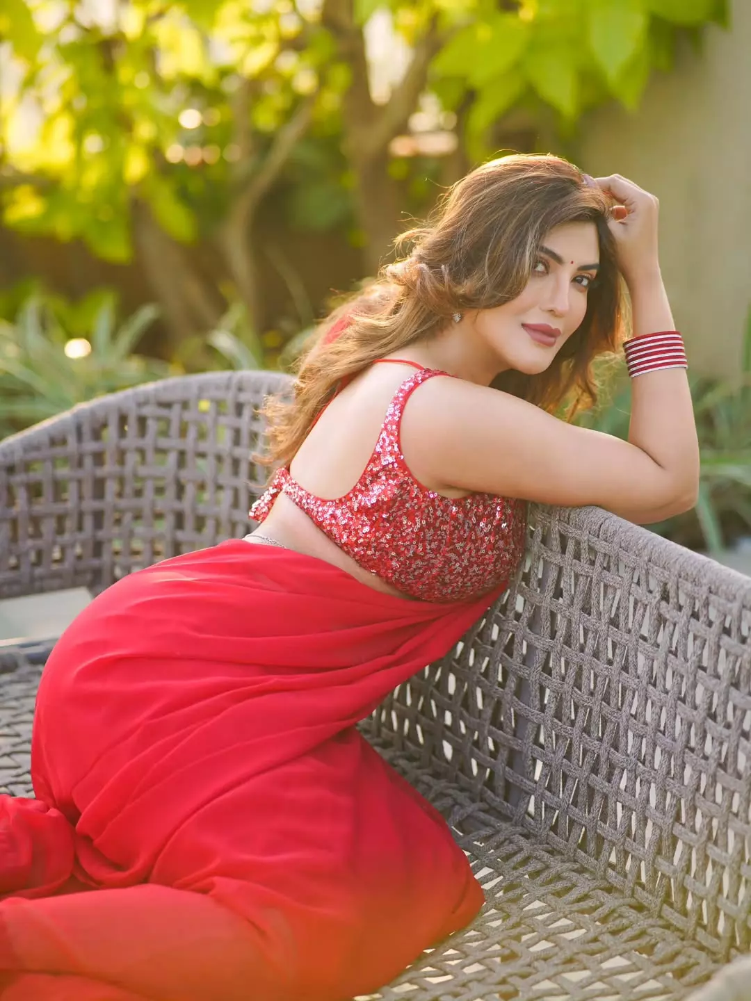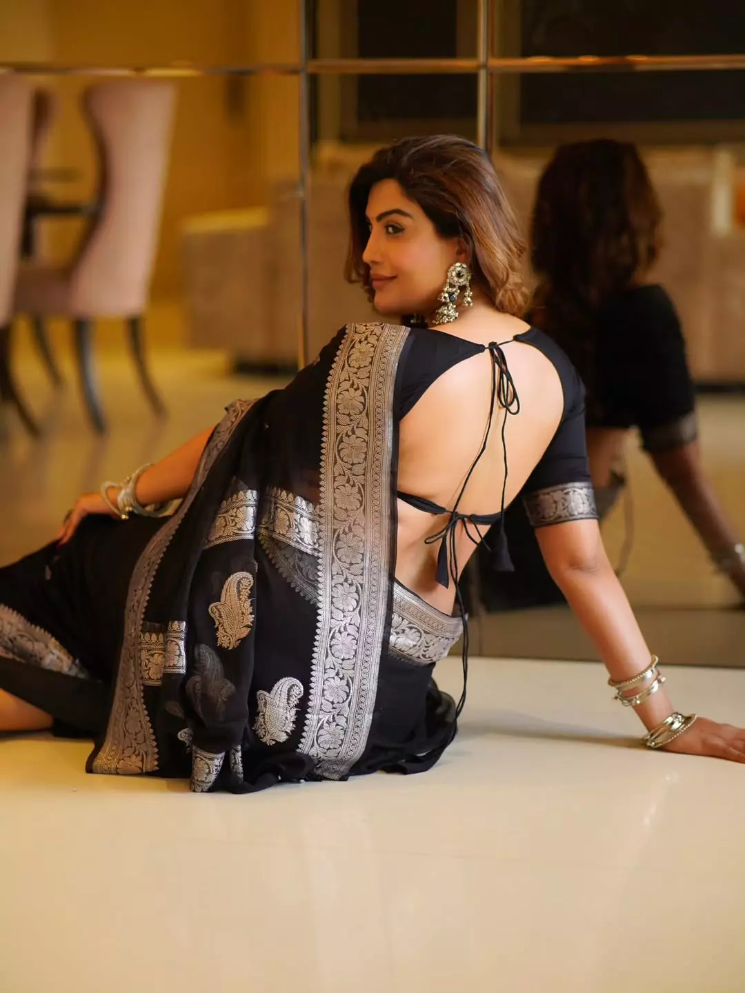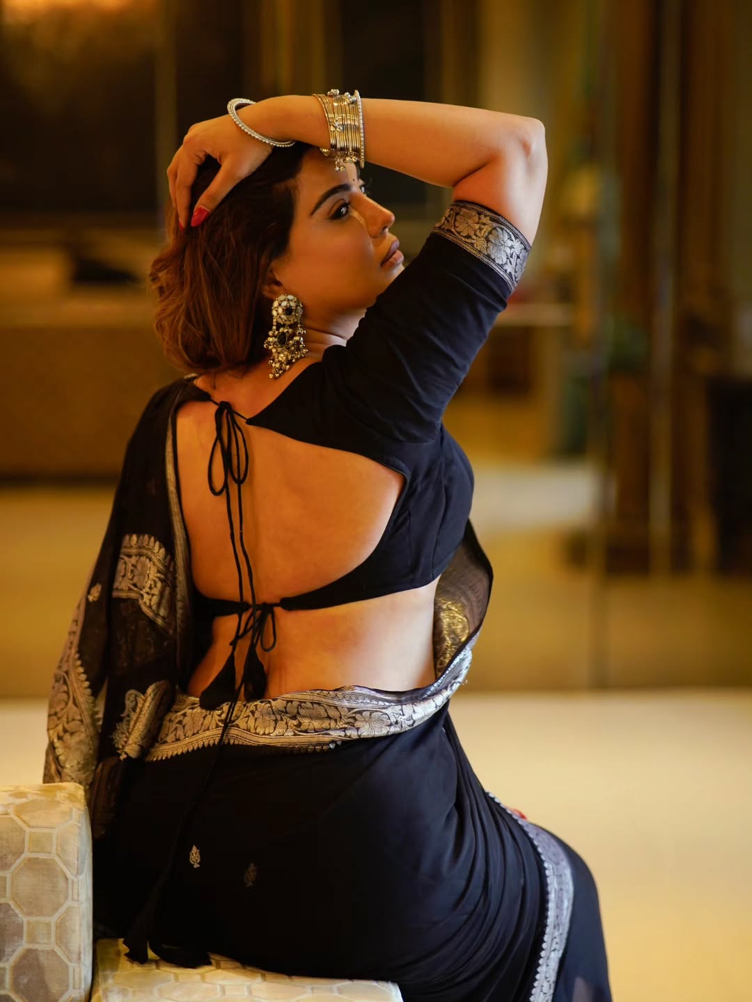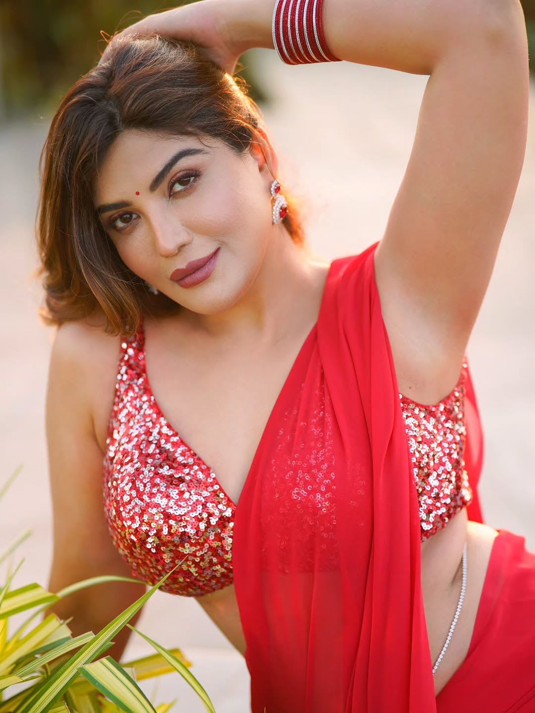 This image perfectly showcases her poise as a model and actress, blending traditional Indian beauty with modern charm.