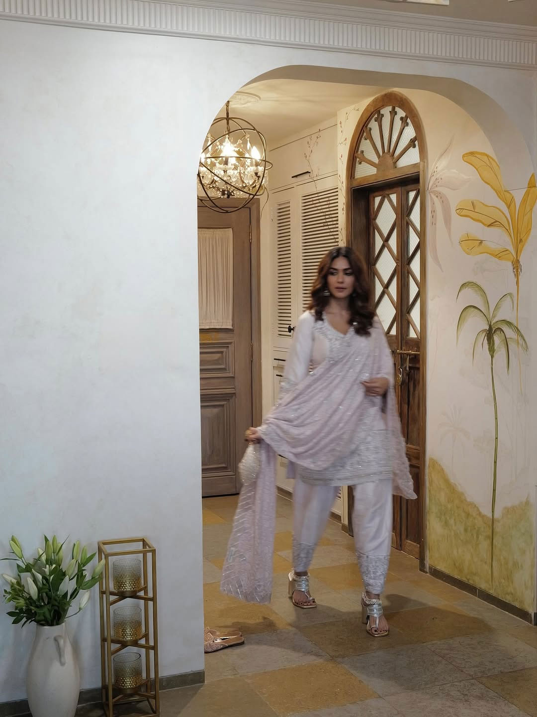 Styled by Sheefa J Gilani, Mrunal looked stunning in an outfit by Mayyur Girotra Couture, paired with elegant jewelry from Curio Cottage and Aprajita Toor. Her look was completed with soft curls, subtle makeup, and a warm smile that reflected pure happiness.
