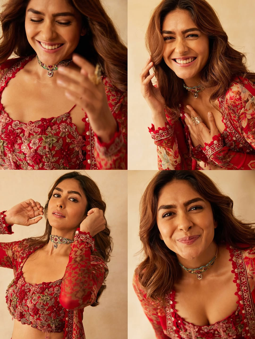 Mrunal Thakur shared a picture of herself wearing a red floral outfit on Instagram. The picture was taken for her recent fashion shoot. In the caption, she wrote, "Rabia ek, mood anek," which means there are many moods in one person.