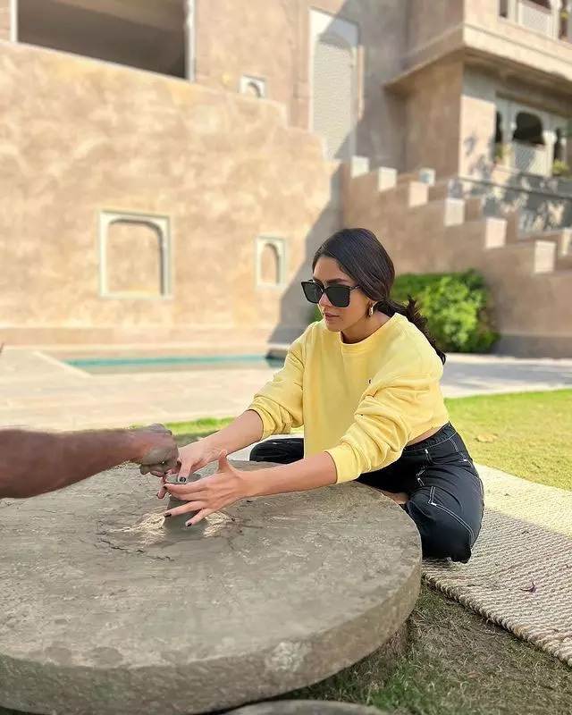 Mrunal Thakur is once again making waves on Instagram with her stylish look. In the photo, the actress is seen in an oversized black shirt dress, paired with black tights and chic sunglasses by creating an effortlessly stylish vibe. The minimalist setting adds to the overall sleek and modern aesthetic of the image. Her caption read, "Stop staring!"