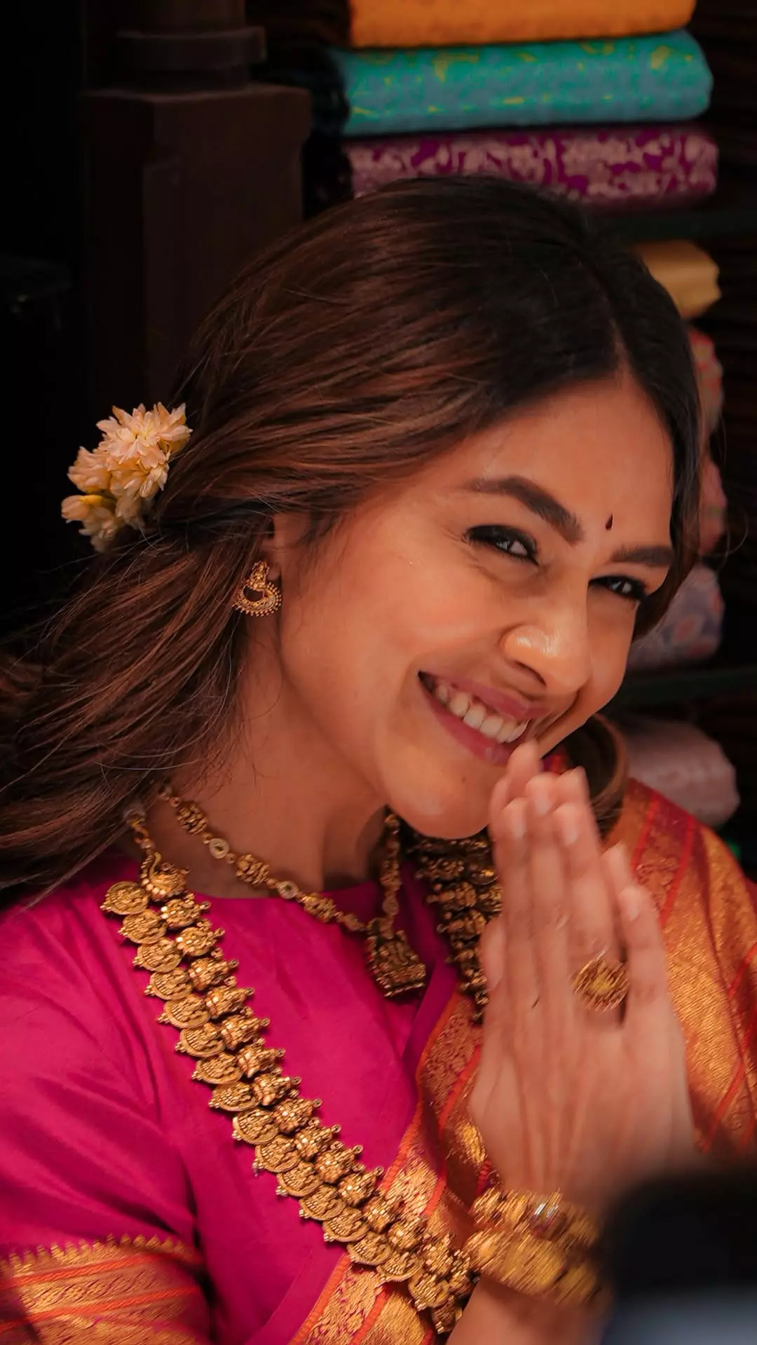In the picture shared on Instagram, Mrunal wore a rich silk saree in bright colors with golden borders. She completed her look with elegant gold jewelry, making her appearance graceful and royal. Fans loved her traditional style, and the post was filled with compliments.