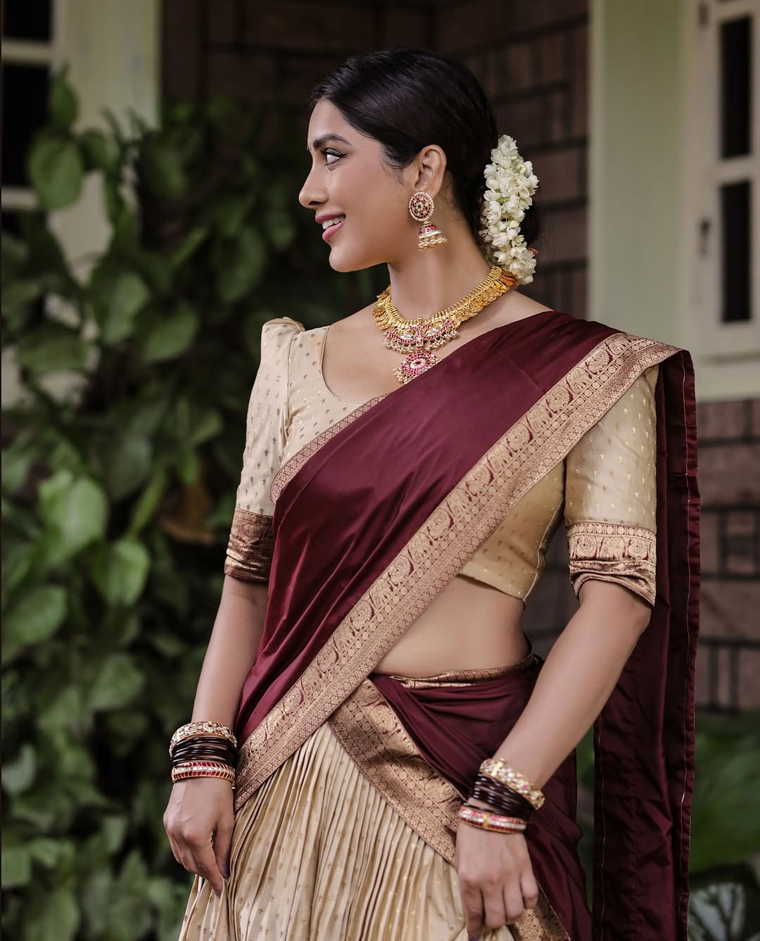 Actress Nabha Natesh made a striking debut in Tollywood with the 2018 film Nannu Dochukunduvate. Later, she was seen in films like iSmart Shankar, Disco Raja, Solo Brathuke So Better, Alludu Adhurs and Maestro. Known for her glamour and modern-day attire, Nabha sizzled in a traditional attire for this Vinayaka Chavithi.