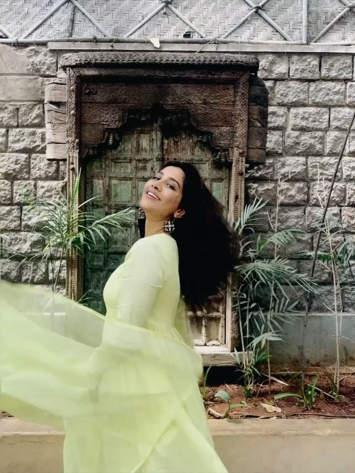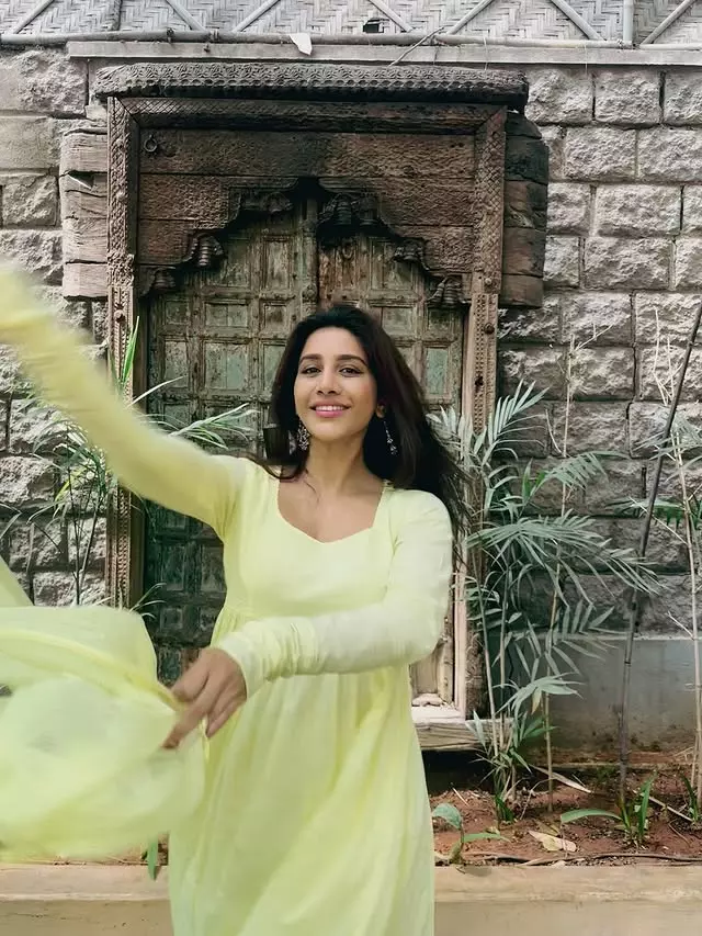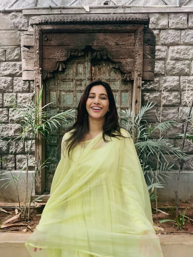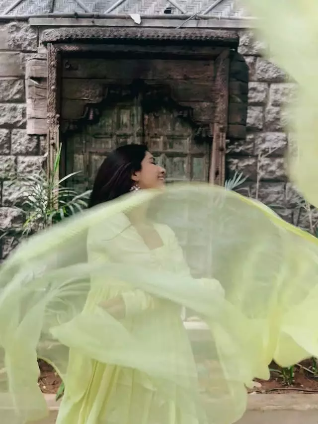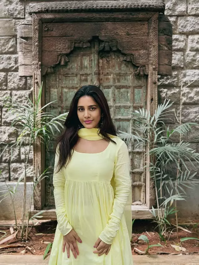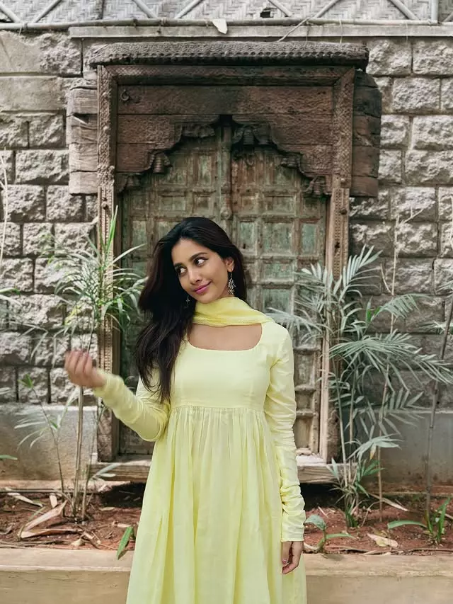 Nabha Natesh�s latest picture doesn�t try too hard,and that�s exactly why it works. Wearing a lime,yellow outfit, she�s caught mid,spin, dupatta floating, face lit up with a natural smile. No stiff poses or forced expressions here. Just Nabha enjoying the moment, in front of a weathered wooden door that gives off old,school charm.