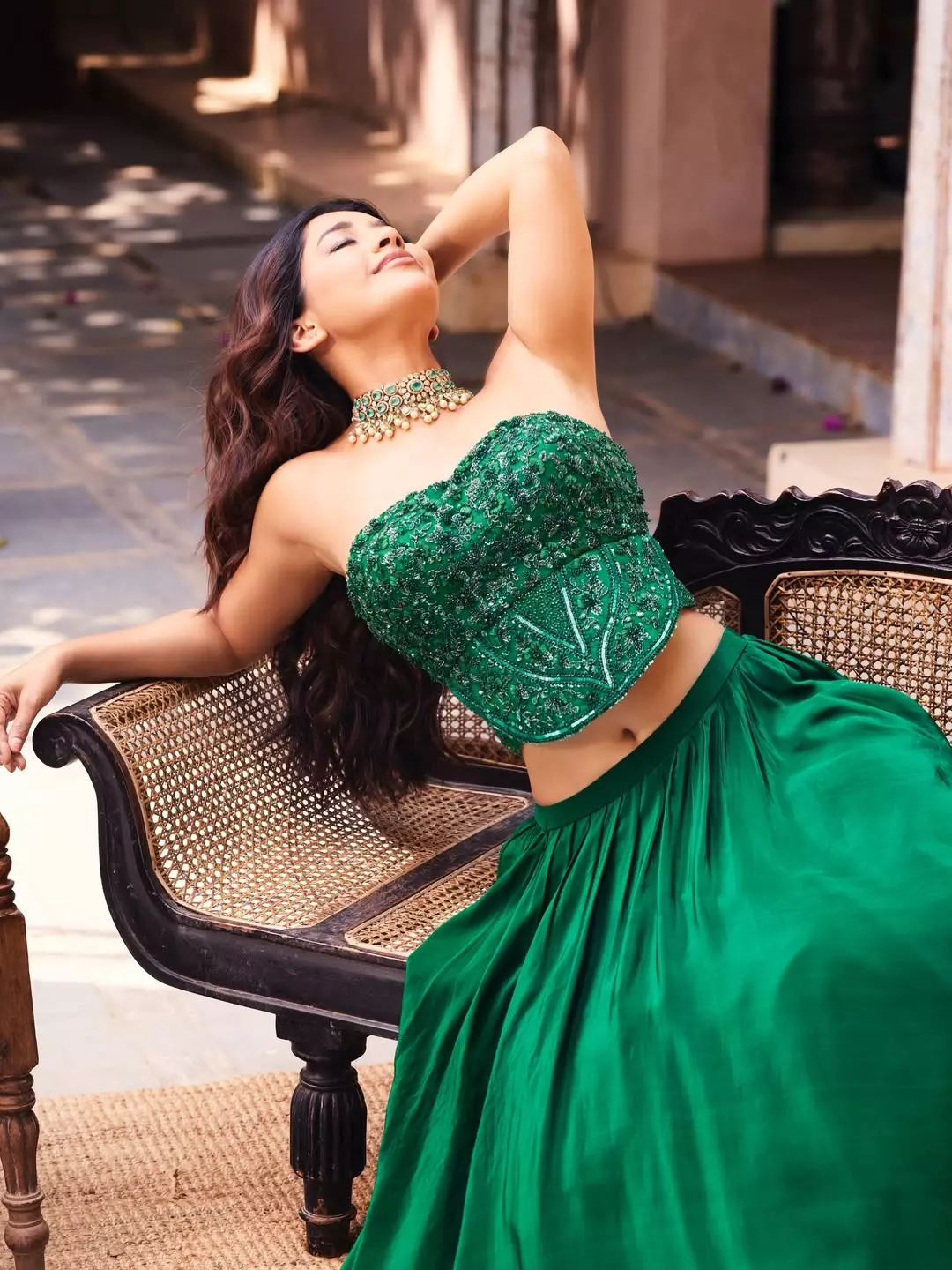 This shoot, orchestrated by photographer Gohil Jeet and styled by Manogna Gollapudi, features a lehenga designed by Mahitha Prasad and jewelry from Amama Jewels, perfectly completing Nabha Natesh’s majestic look. The series underscores her evolving style—rooted in tradition, yet confidently contemporary—cementing her status as a fashion icon who effortlessly bridges culture and modernity.