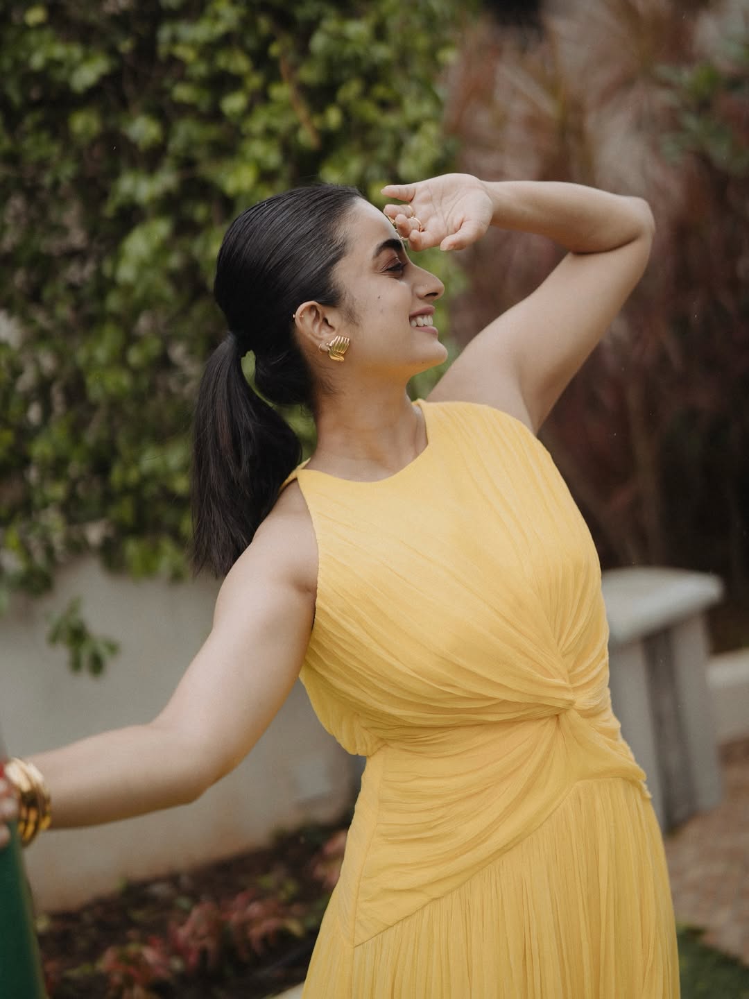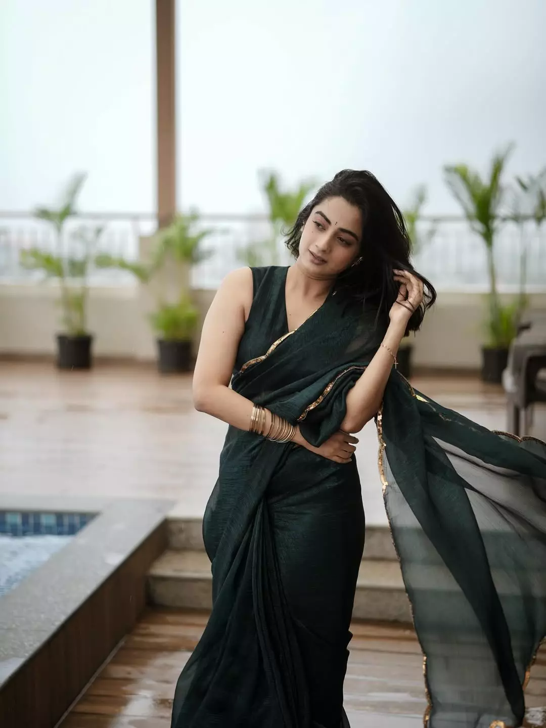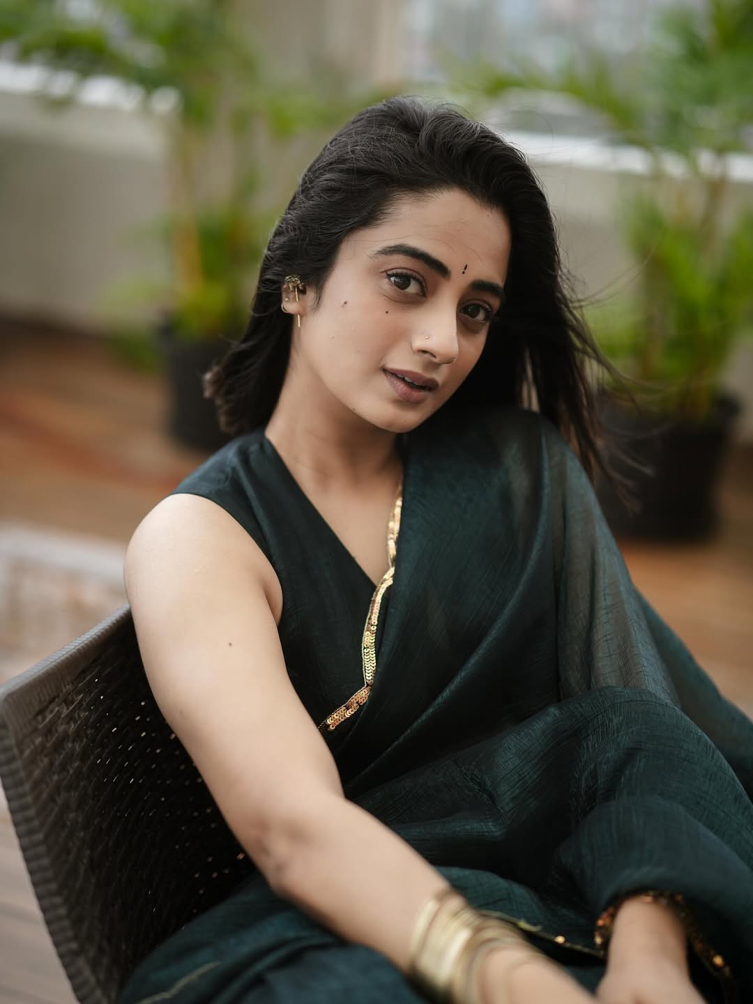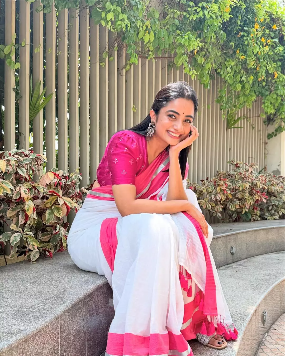 Namitha Pramod is known for her homely and girl-next-door looks. In this recent photoshoot, Namitha wore a white-coloured saree with parrot and mango prints. She complemented the saree with a yellow blouse, matching earrings and bangles. Her classy poses and regal looks made the picture more appealing. A small bindi on her forehead made Namitha Pramod prettier in these photos. "Pachai Kili Muthucharam 🦜," she captioned the post. Fans have been showering compliments on Namita for these scintillating photos.