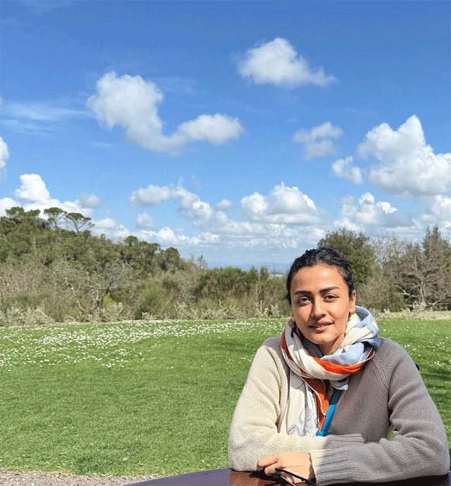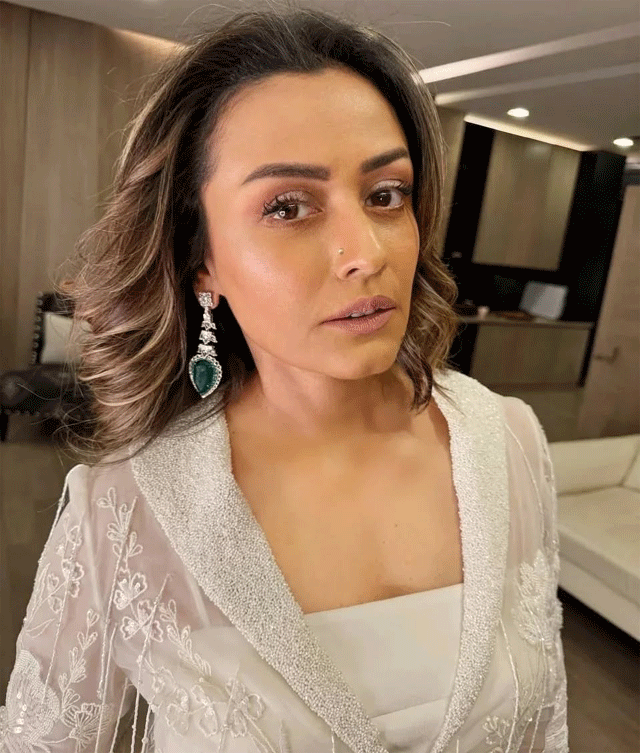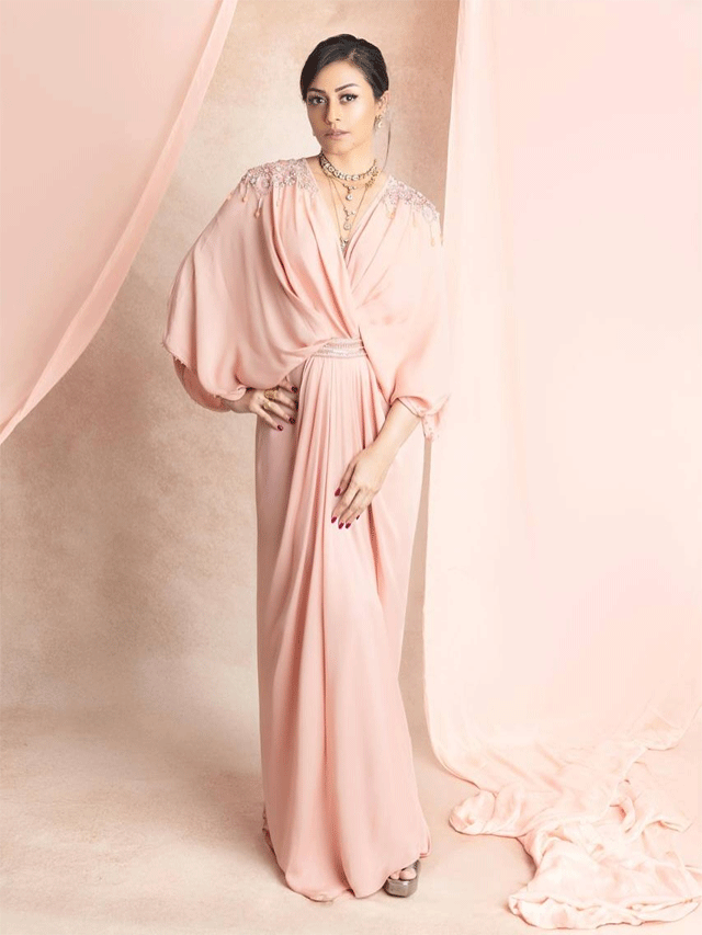 Namrata Shirodkar recently shared a beautiful picture on Instagram, captioning it “A little bit of peach energy for you all ✨.” In the photo, she is wearing a soft peach-colored gown designed by Tarun Tahiliani. The dress flows beautifully, and her look is completed with light makeup and elegant jewelry. The overall styling is graceful and classy, showing her timeless beauty.