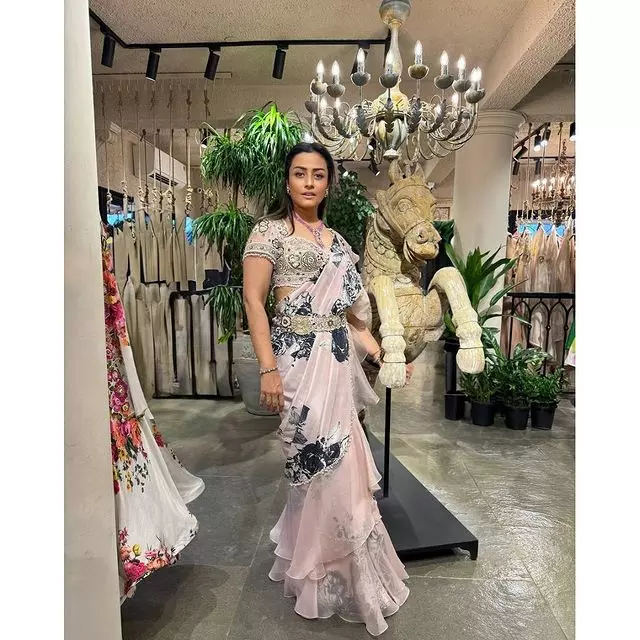 In these pictures, we see Namrata in a peach coloured outfit that perfectly suits her aesthetic and elevate her natural glamour to the bigger league. There is a lot of elegance associated with this picture and understand so considering the family woman image that she carries.