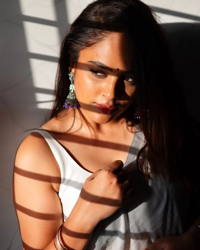 Nandita Swetha is a talented actress known for her diverse roles in Tamil, Telugu, and Kannada films shares a beautiful post on Instagram with the caption, �She carries stories in her silence.� The image, captured in soft lighting, reflects a serene moment where Nandita exudes calm and grace.