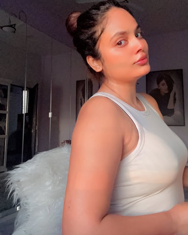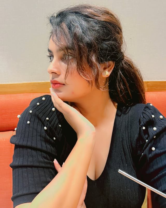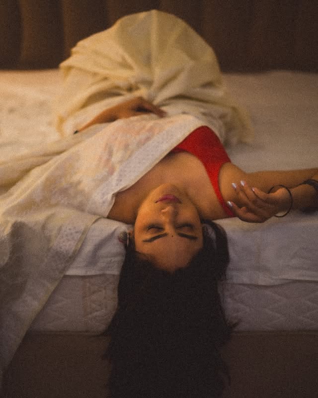 In a moment that radiates timeless grace, actress Nandita Swetha stuns in a soft ivory saree paired with a bold red blouse. Her poised expression and subtle elegance exude a blend of traditional charm and modern allure. The warm lighting adds a touch of intimacy to the frame, making her look like a painting brought to life.