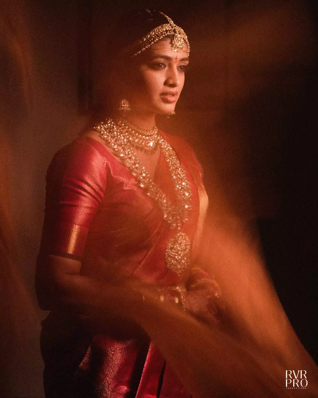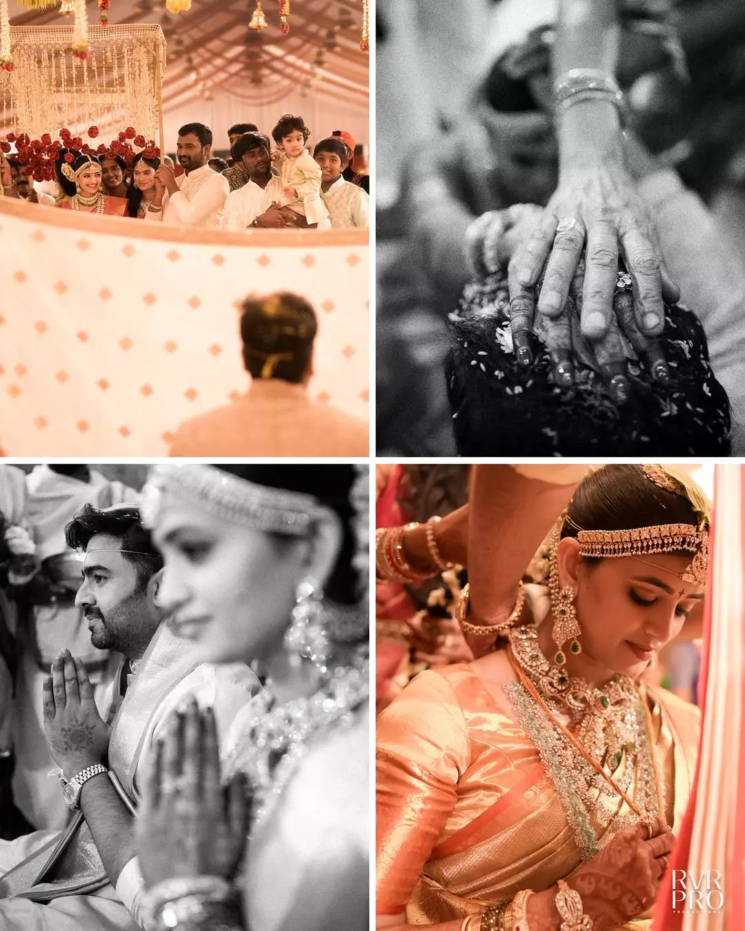 The couple looked radiant in traditional attire. While Sireesha wore an elegant pink silk saree with beautiful temple jewelry, Rohith looked dapper in a cream sherwani.
