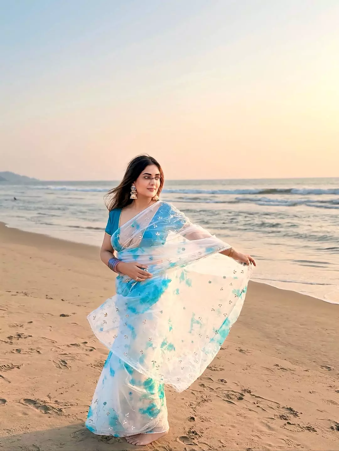 Natasha Singh captivates in this stunning beachside photo, embodying vacation vibes and effortless glamour.