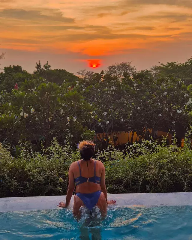 Defying the conventional beauty standards that dominate the industry, Neha is proving that real beauty comes from within. In her latest beachside photoshoot, she exudes confidence in a vibrant blue bikini, enjoying a peaceful poolside breakfast with a radiant smile. No filters, no edits—just pure authenticity, showing the world what it means to truly love yourself.
