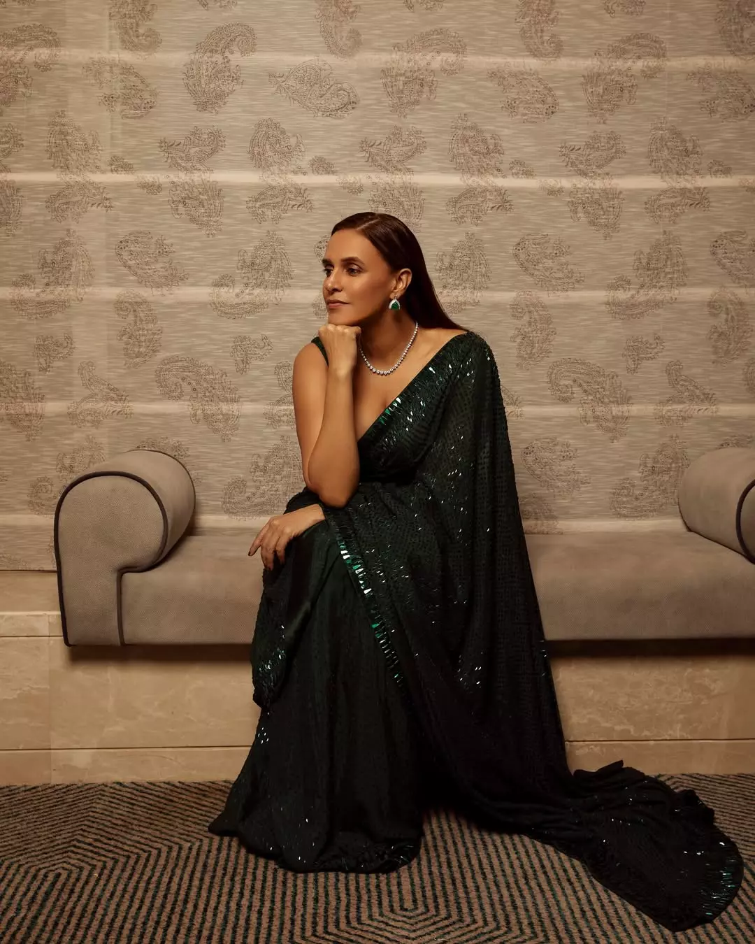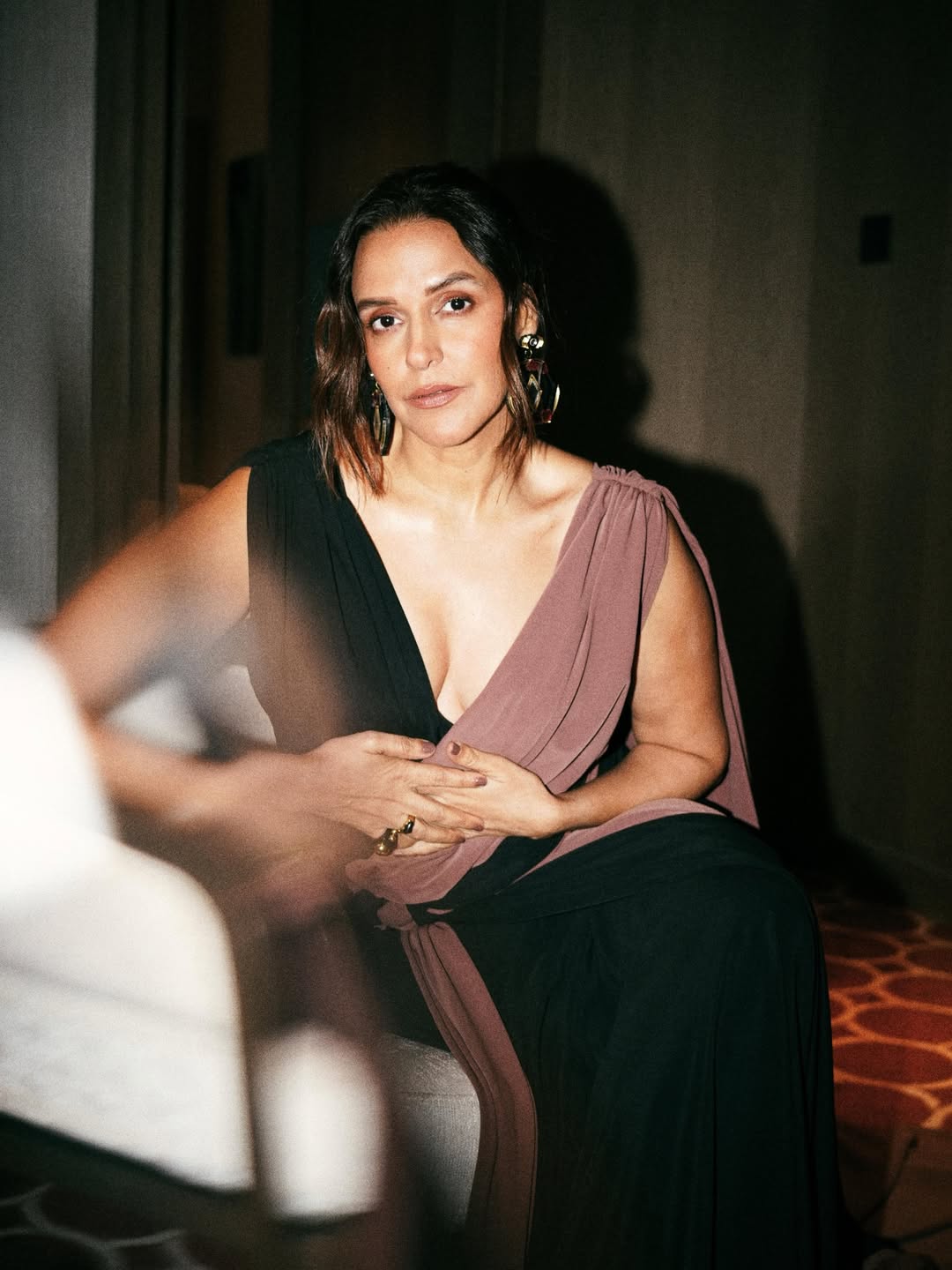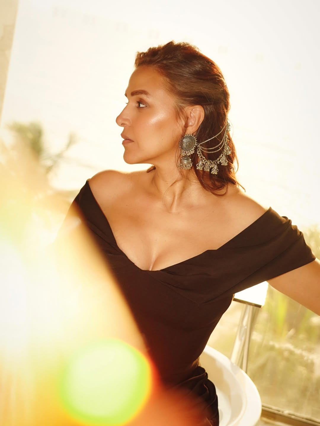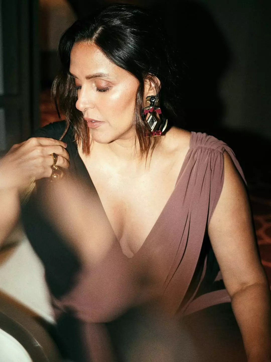 Neha Dhupia looks absolutely stunning in this glamorous black off-shoulder ensemble, exuding confidence and elegance as she poses by the bathtub.Trophy Wife — the multi-talented actress and devoted wife to Angad Bedi recently added another feather to her cap. At the Pinkvilla Screen & Style Icons Awards 2026, she won the Best Supporting Actor - OTT Female for her delightful role as Romilla Nehra (Mrs Nehra) in the Netflix series Single Papa.