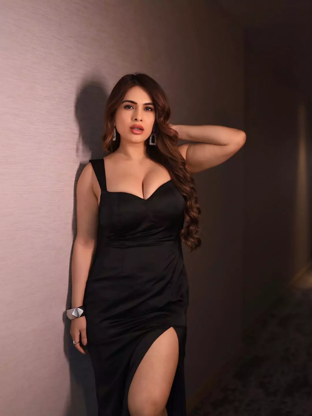 Neha Malik is turning up the heat once again with her latest stunning photo in a sleek black dress that hugs her curves perfectly. Leaning against the wall with confidence and sultry eyes, she effortlessly owns the frame. Black dress + me = your new favorite distraction... — this caption perfectly sums up the vibe as fans can’t stop admiring her bold and glamorous avatar.