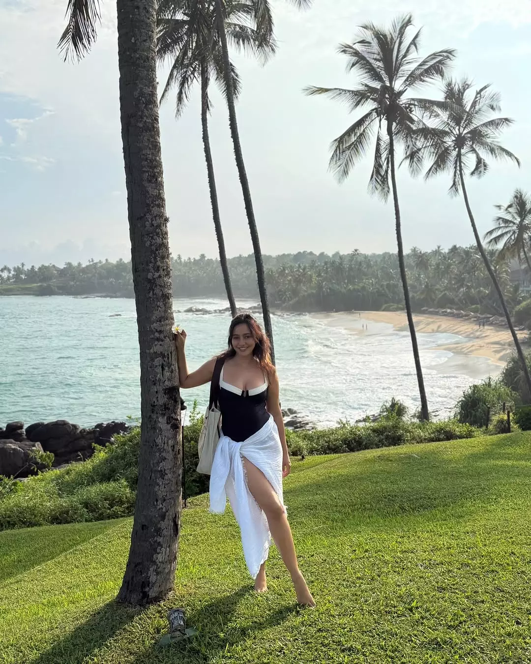 Neha Sharma often shares moments from her life on social media. She gives a glimpse of her love for food, travel and fashion. Neha Sharma shared a new picture on Instagram. She is sitting on a rock by the sea. She is wearing a black and white dress. The dress matches the calm and fresh surroundings. The golden sunlight, warm glow; everything looks perfect and she looks like a moon under sun.