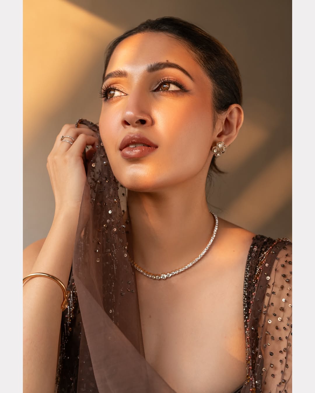 Neha Shetty captivates effortlessly in this stunning black-and-white portrait that highlights her timeless beauty and graceful screen presence. With soft lighting accentuating her features and her flowing hair adding a touch of drama, Neha’s look is both classic and contemporary. The minimal styling and natural expression allow her confidence to shine through, proving that simplicity often creates the strongest impact.