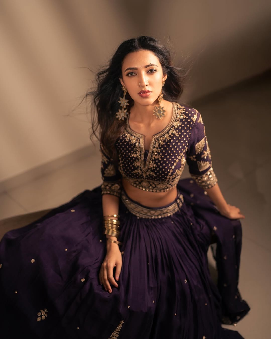 In the picture, Neha is seen wearing a cream-colored saree with a purple blouse. The saree was simple yet classy.