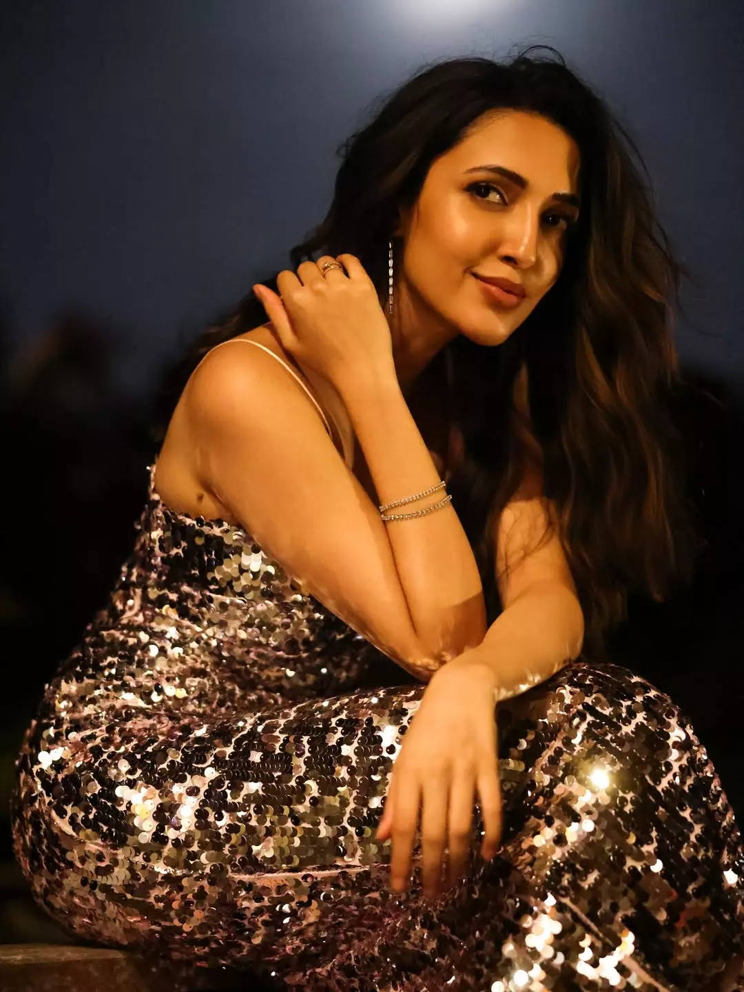 Neha Shetty looks stunning in her new Instagram post. She is wearing a shiny golden outfit with a deep neckline.