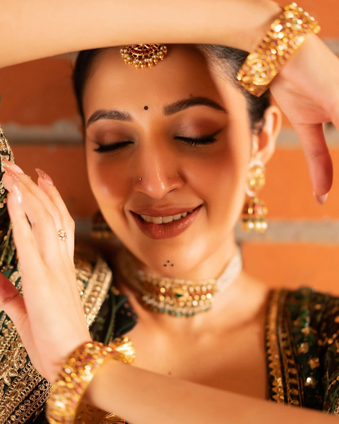 Neha Shetty has once again captured hearts on Instagram with her latest photo where tradition meets glam in the most elegant way. Wearing a rich, intricately detailed lehenga by @labelnityabajaj, she captioned it: "A canvas of culture painted in hues of heritage." And truly, that�s what she looked like�a living artwork.