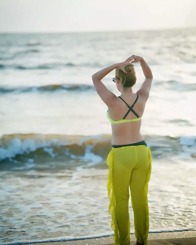 Styled in breezy beachwear by @angel_croshetswimwear and beautifully captured by @sachinaikq, the photos highlight her toned figure, sunkissed glow, and undeniable camera presence. The yellow ensemble radiates vibrancy, making her stand out like a true beach goddess.