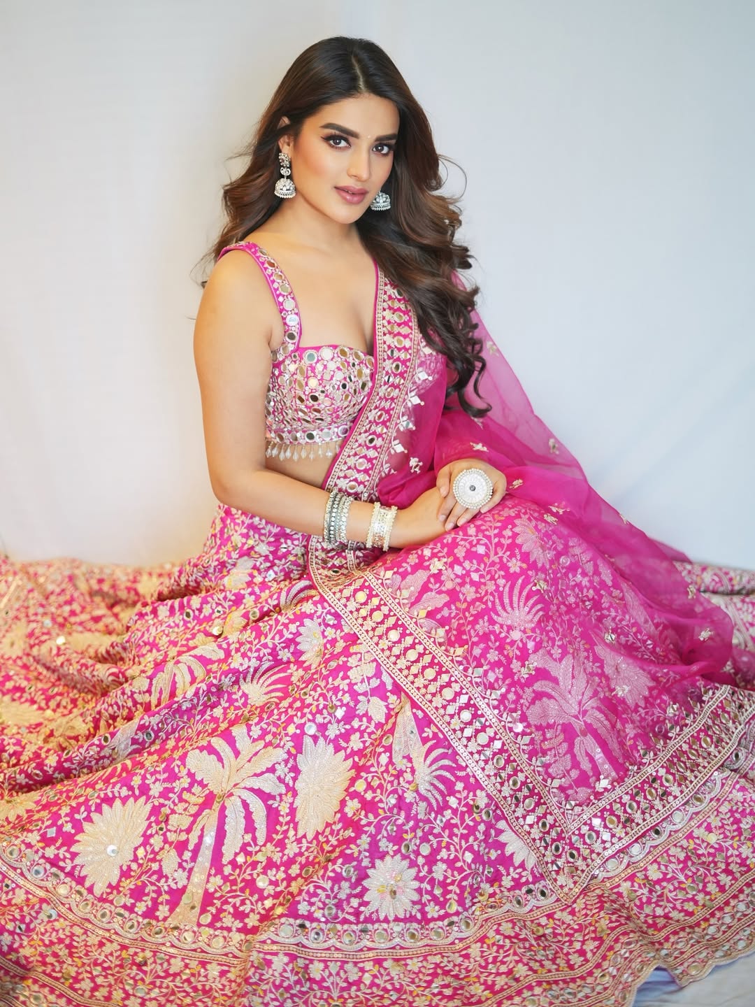 Nidhhi Agerwal Radiates Elegance in a Floral Embellished Pink Saree