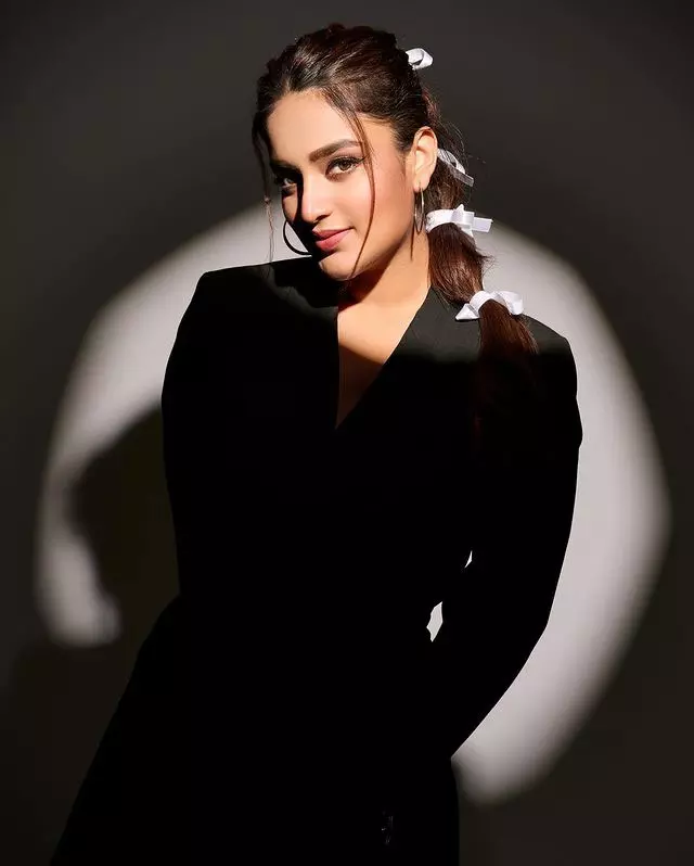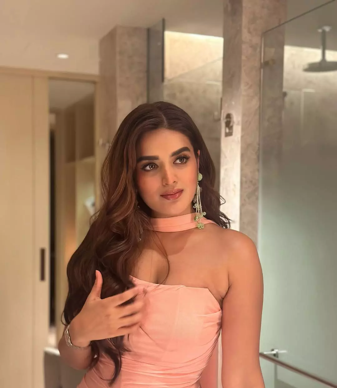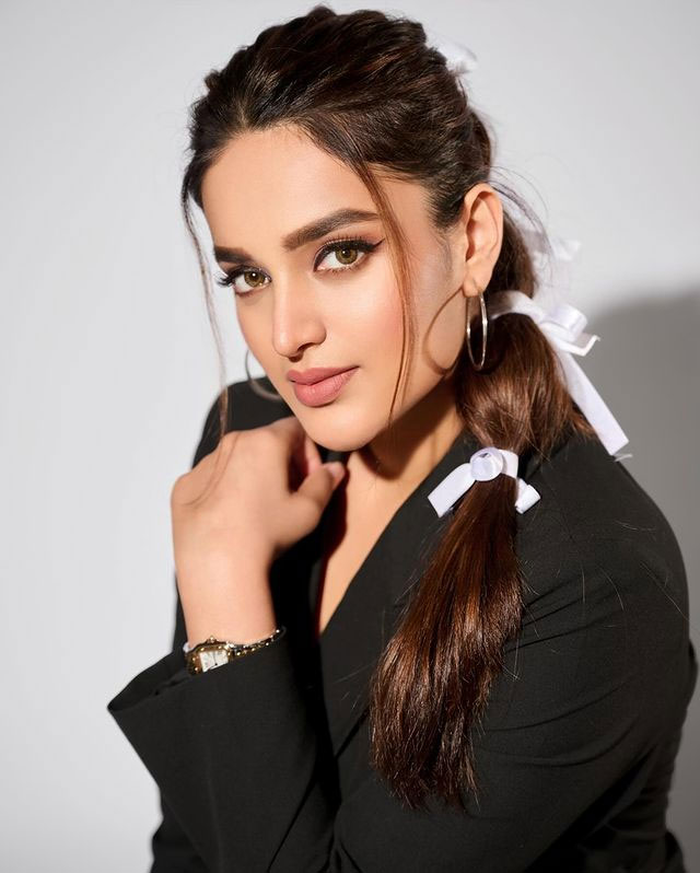 foto, the look exudes confidence, sensuality, and high-fashion flair, perfectly highlighting her poised charm and striking features.Born on August 17, 1993, in Hyderabad and raised in Bengaluru, Nidhhi participated in Miss Diva Universe 2014 before entering acting. Her movie debut was in Bollywood with Munna Michael (2017) opposite Tiger Shroff, earning her the Zee Cine Award for Best Female Debut.