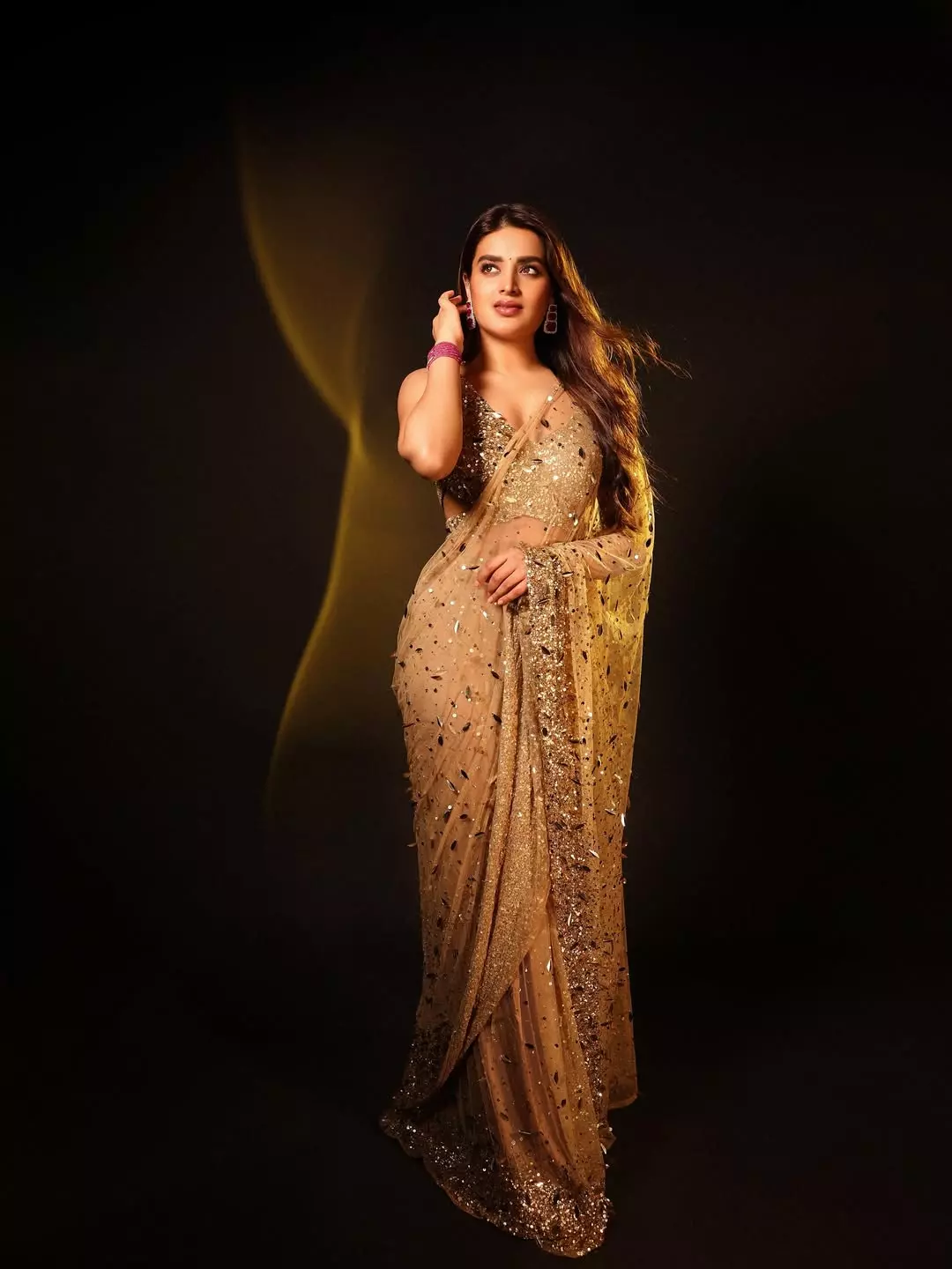 Nidhhi Agerwal recently shared a photo on Instagram by looking absolutely mesmerizing in a golden saree.