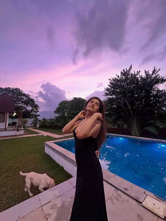 By: Tupaki Desk | 4 Jun 2025 12:06 PM ISTIn this beautiful Instagram picture, television actress Nidhi Shah is seen enjoying a peaceful moment by the poolside. Dressed in a stylish black outfit, Nidhi looks happy and relaxed as she poses with a glowing smile. The soft pink and purple evening sky in the background adds a magical touch to the photo. She captioned the post with a simple yet charming “💗✨.”