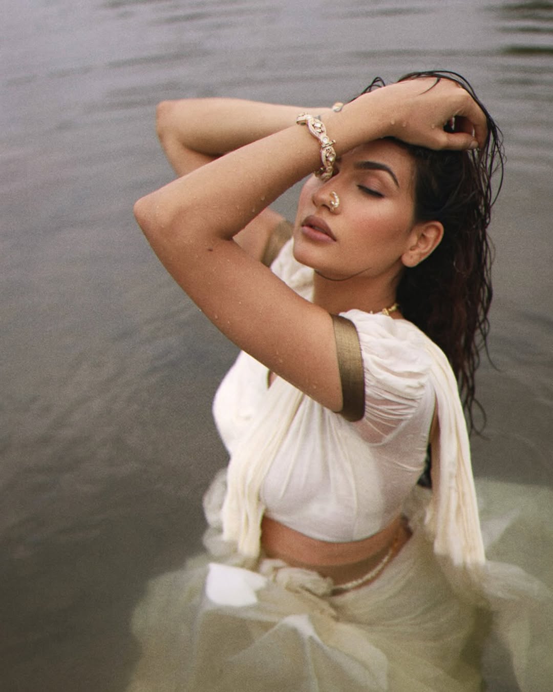Nidhi Tapadia Dazzles in Rainy Saree Shoot |