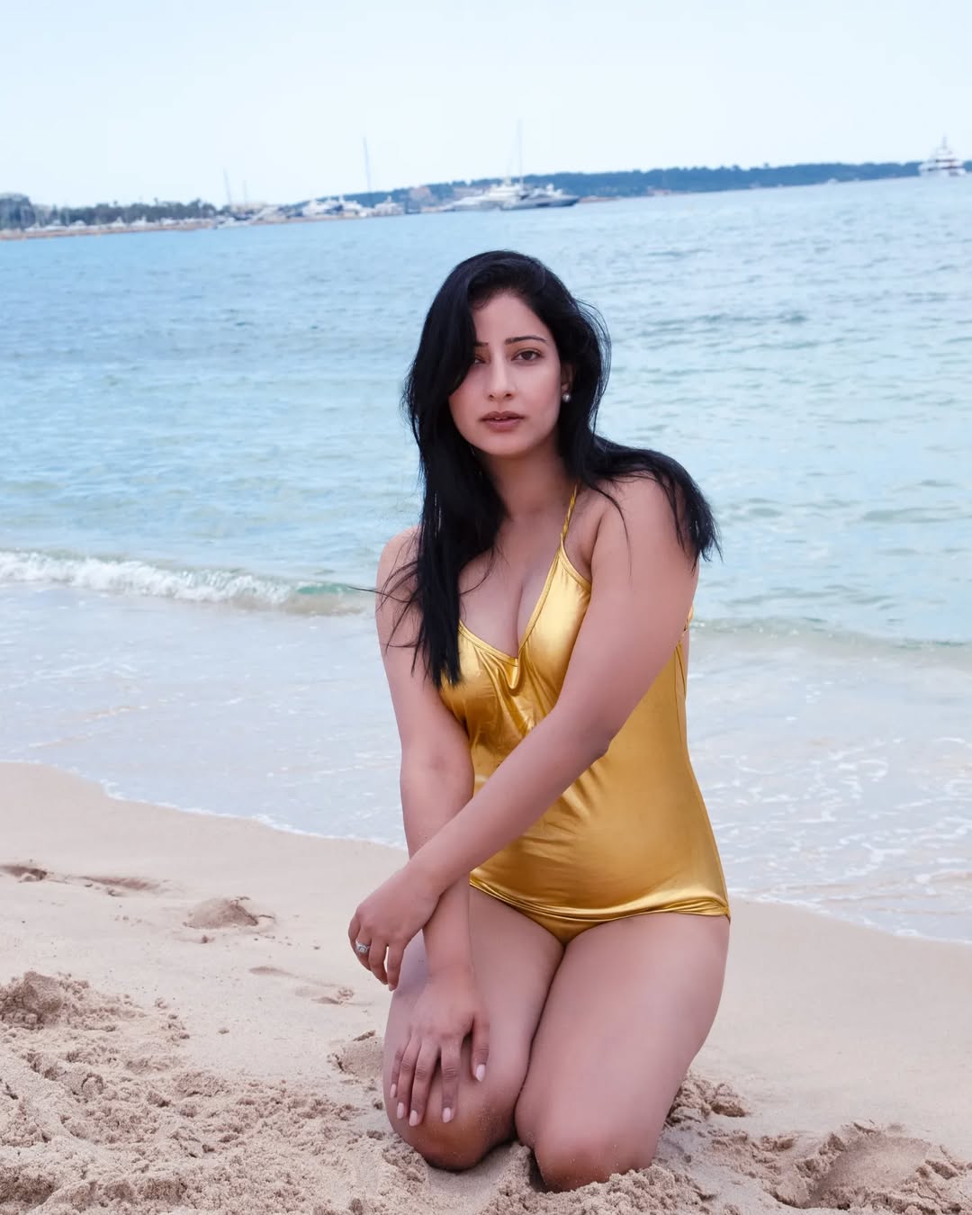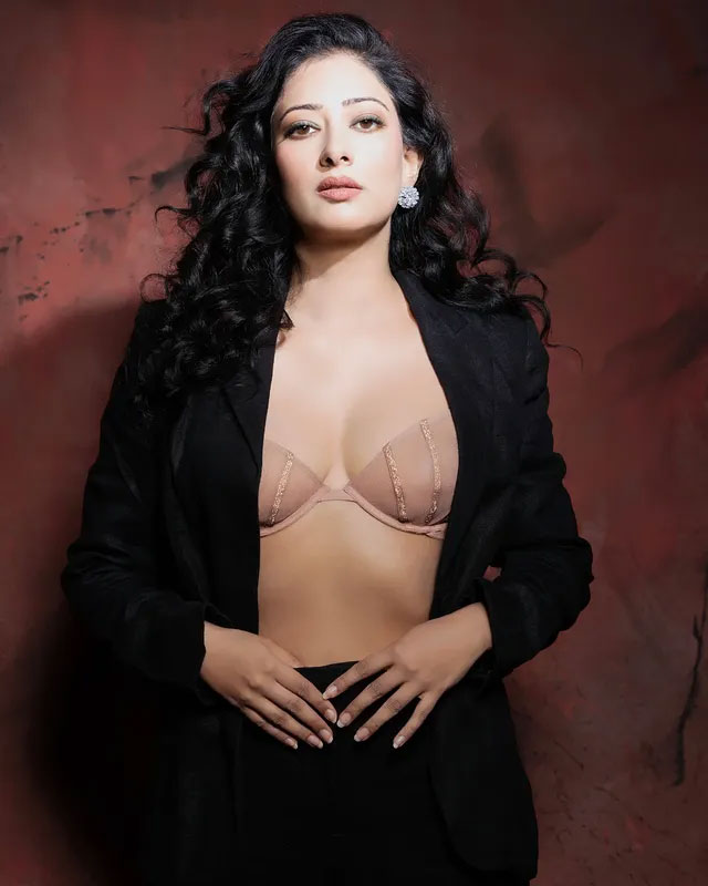 Niharica Raizada leans into soft dawn light, a half-buttoned striped shirt slipping from her shoulders like a secret shared with the camera. Black-and-white filters every curve into timeless intimacy—eyes closed in quiet joy, one hand draped over rumpled sheets. The Bollywood actress, known for her fierce roles and fiercer heart, captions it perfectly: I was born with an enormous need for affection, and a terrible need to give..