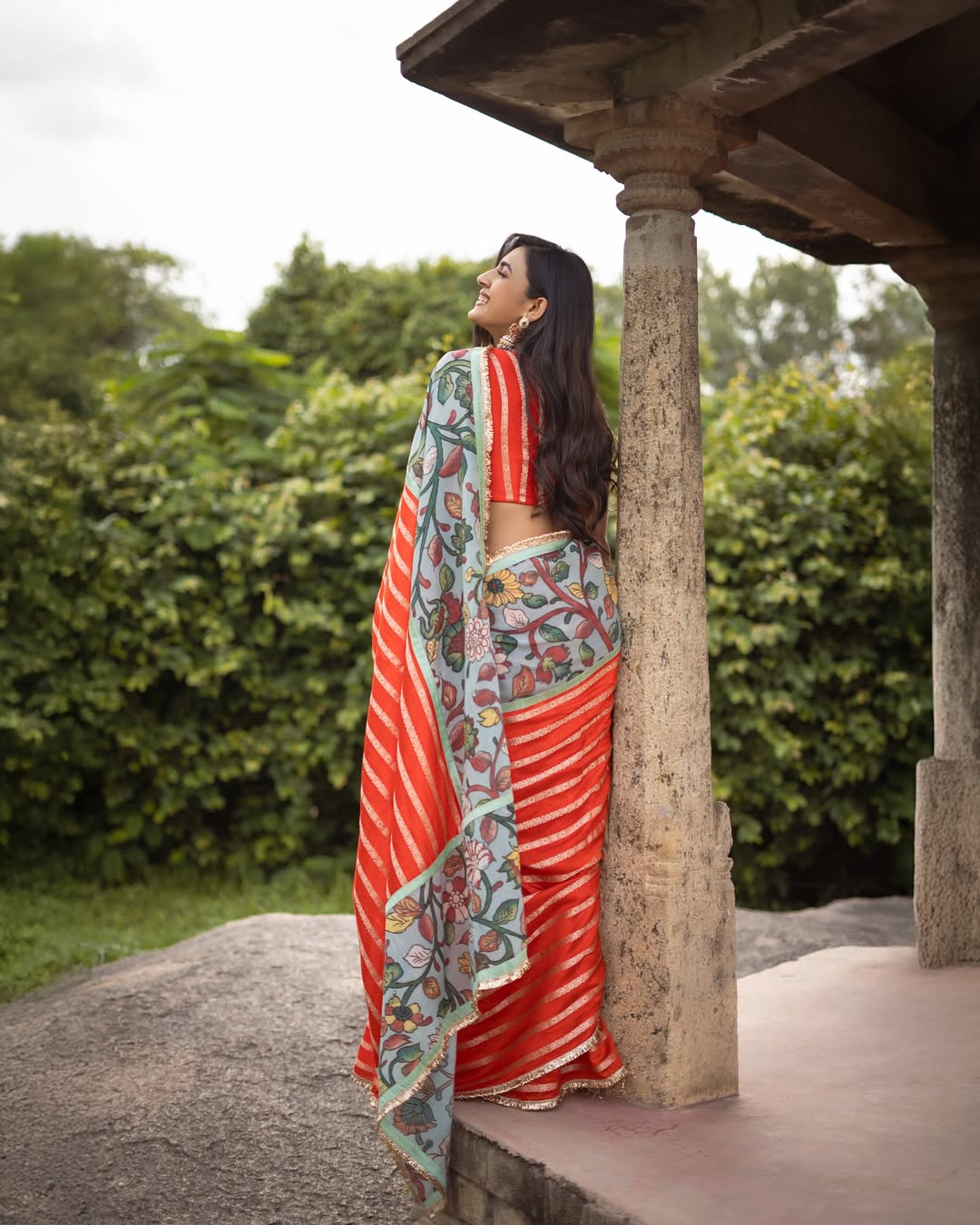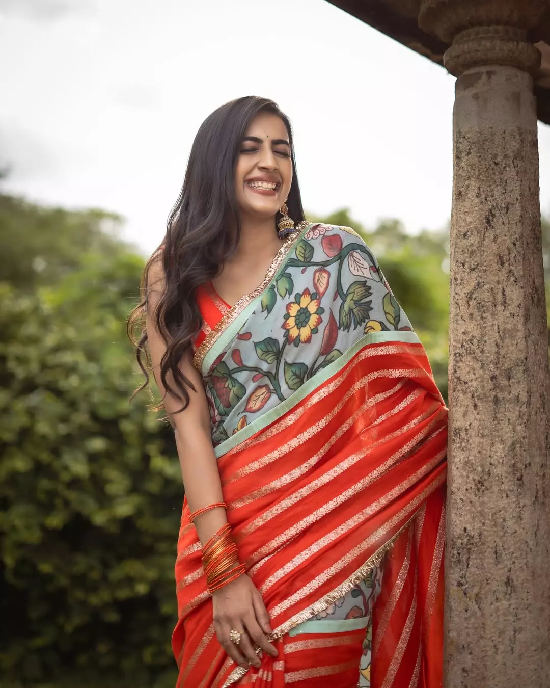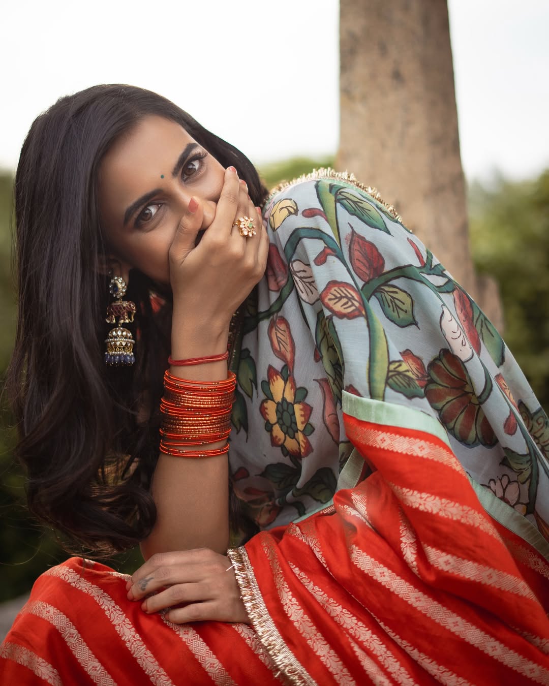 Her post was more than just a fashion showcase; it was a small diary note. With the caption “Captures from a good day!” she shared the credit list, styling by Manogna Gollapudi, saree by Aamra by Lavanya, jewellery from Matsya Silver, and photography by Pranil Chintewar. She even added a personal touch by revealing a song by Saathwik was on loop, making the moment feel relatable and real.