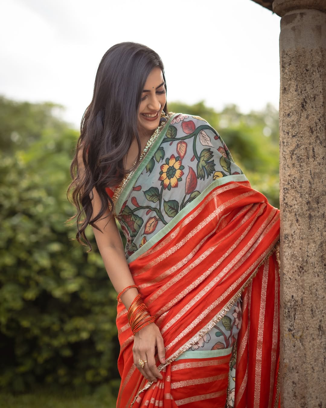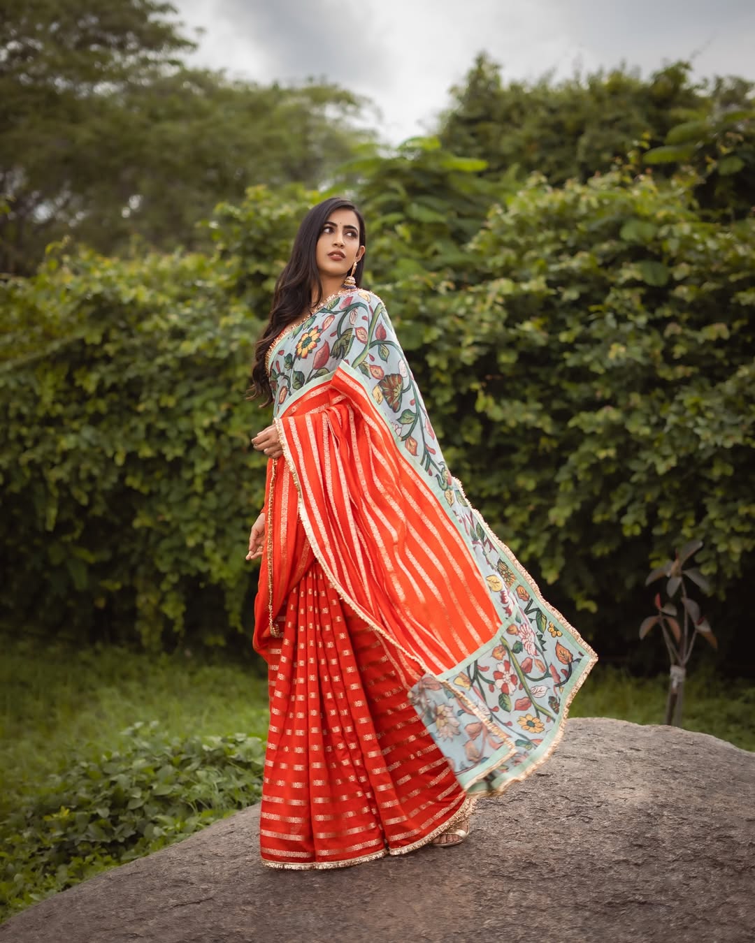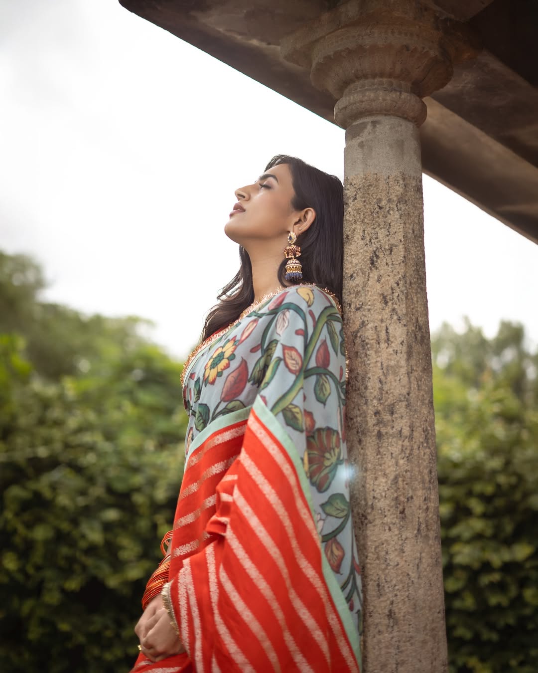 Her post was more than just a fashion showcase; it was a small diary note. With the caption “Captures from a good day!” she shared the credit list, styling by Manogna Gollapudi, saree by Aamra by Lavanya, jewellery from Matsya Silver, and photography by Pranil Chintewar. She even added a personal touch by revealing a song by Saathwik was on loop, making the moment feel relatable and real.
