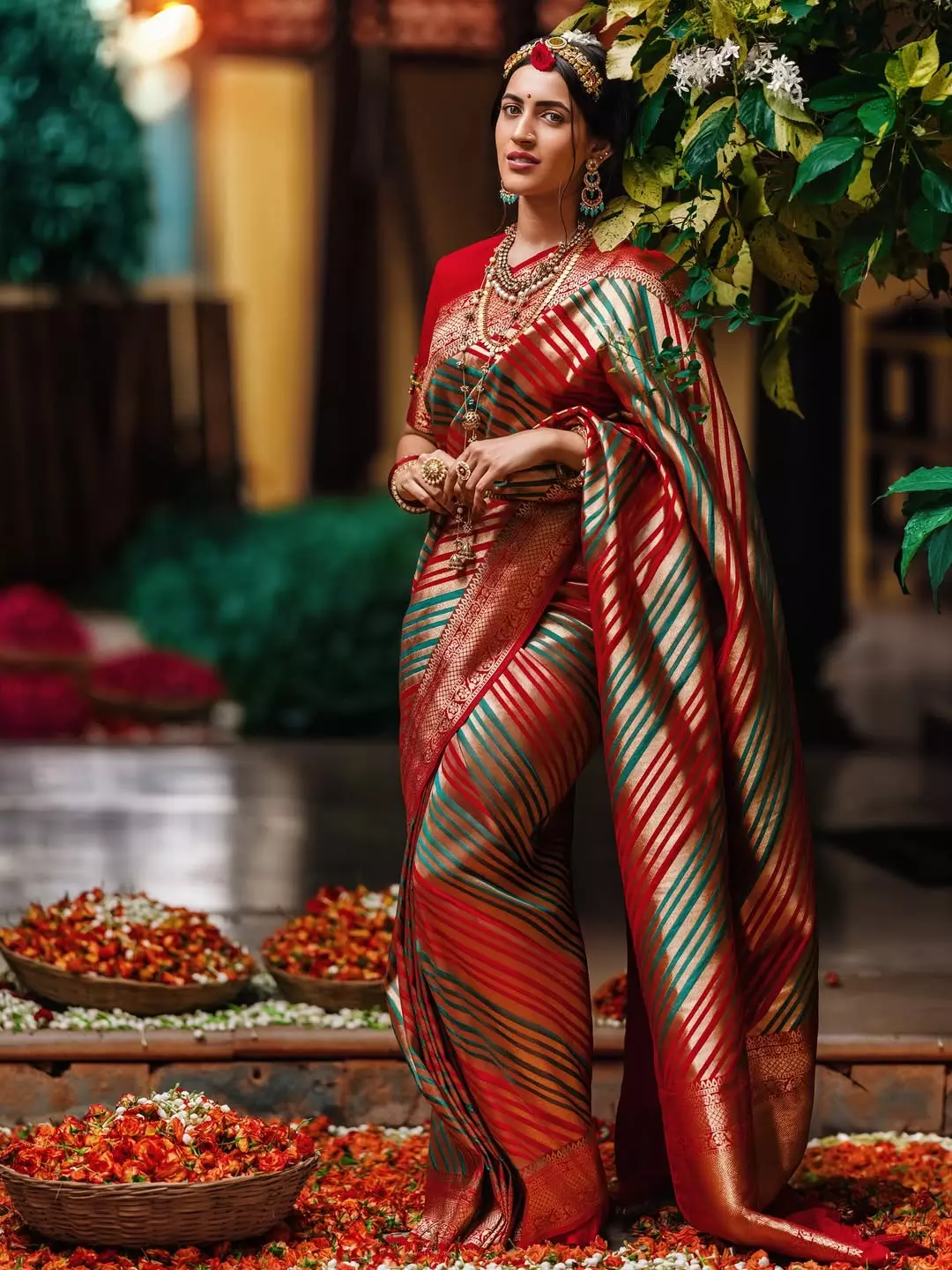 Alongside this professional leap, Niharika also treated her followers to a set of stunning pictures. Draped in an orange striped saree, paired with a green touch and matching orange bangles, she carried a look that was both rooted in tradition and modern in spirit. A dash of bold lipstick and her calm smile completed the frame, making her appear effortlessly graceful.