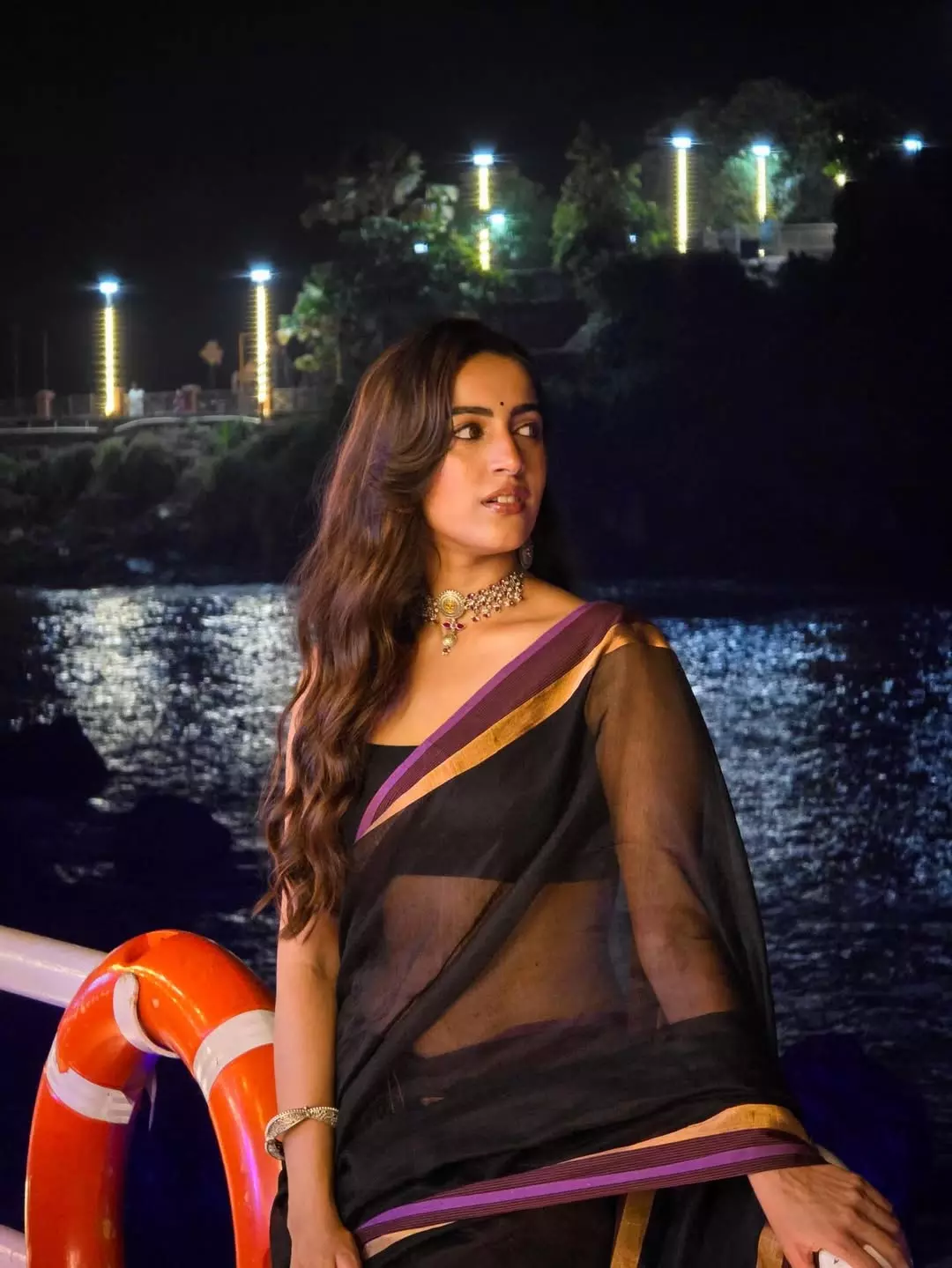 By: Priya Chowdhary Nuthalapti | 29 Nov 2025 9:22 PM ISTNiharika Konidela shared a beautiful photo on her Instagram recently, and the picture immediately caught everyone’s attention. In the photo, she is seen in a simple and elegant black-and-gold saree and is seen beside a calm water backdrop at night.