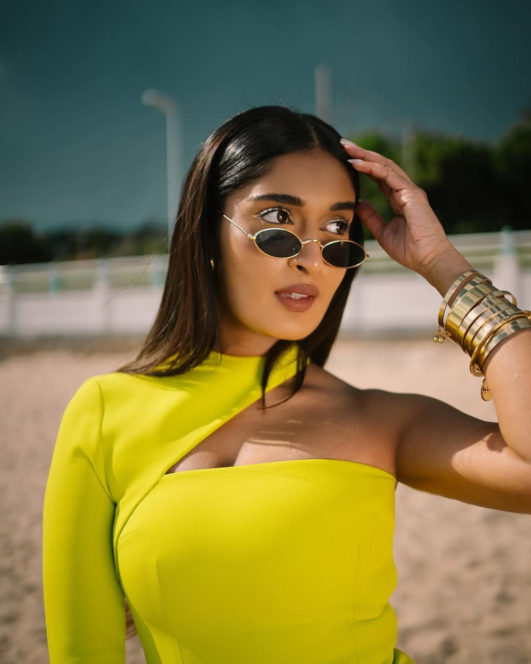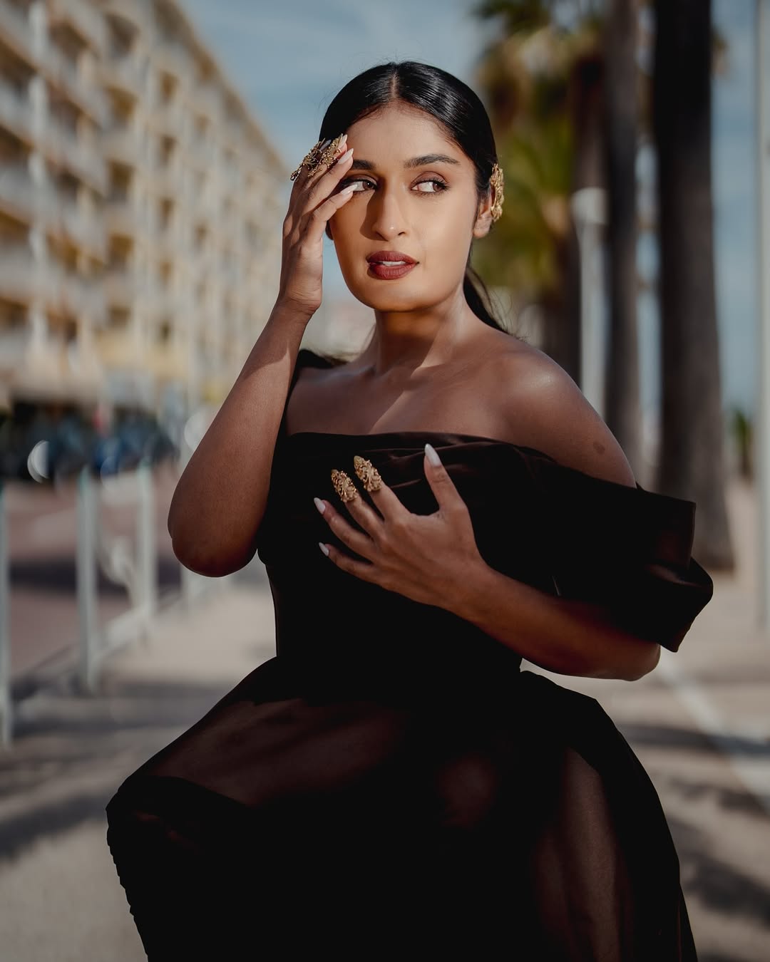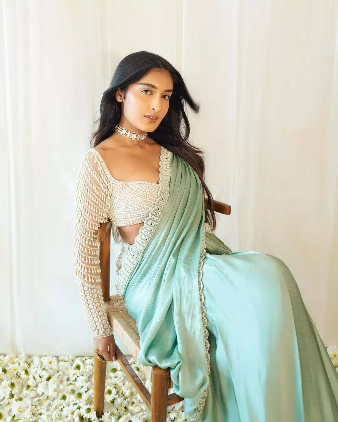 Niharika NM blooms amid jungle greens in a fiery floral lehenga by @asthanarangofficial, rust-gold sequined blouse catching dappled sun while the organza skirt swirls like autumn fire. Gold choker, twisted cuff, and hoop earrings from @studiometallurgy frame her sun-kissed glow. Shot by @roverdiaries_ Hair @the_karthigaga Outfit @asthanarangofficial @the.yellow.dot Jewels @studiometallurgy Styling @sandhya__sabbavarapu Styling team @bedazzledbygk @styledbyramya @devaraa92 @kundhana_varma Location @thesanctuarykitchenhyd—the Suryakantham star just turned paradise into her runway.