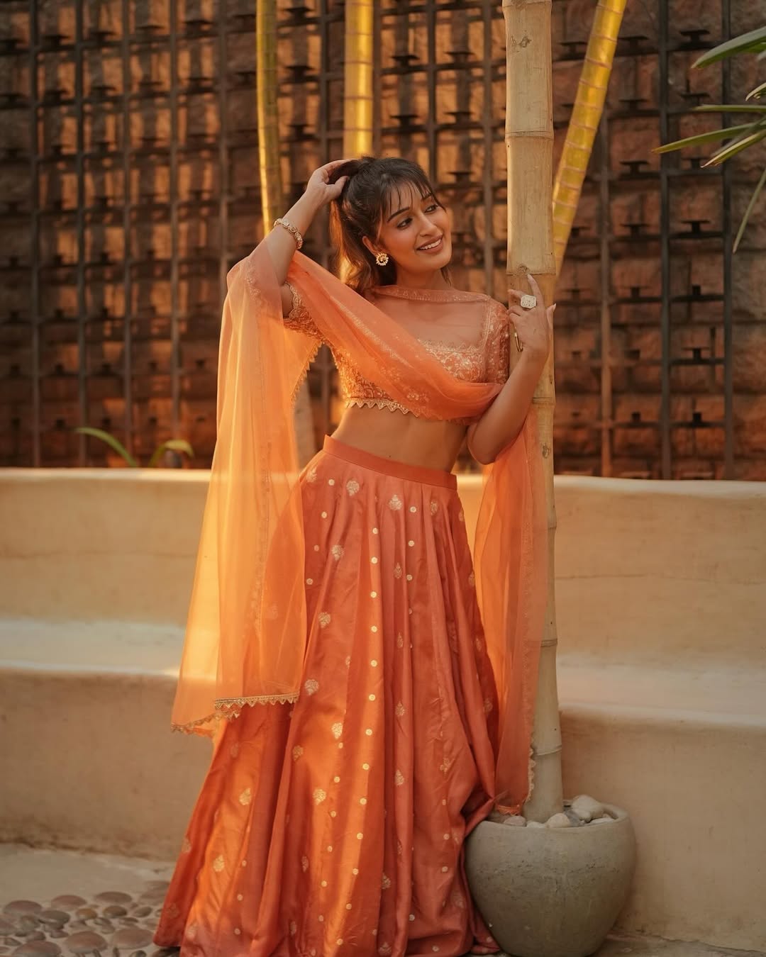 Niharika NM Stuns in Autumn-Hued Lehenga Amid Lush Greens