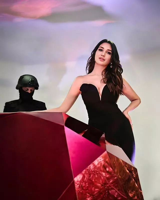 Nikita Dutta shows off her beautiful side in her latest Instagram post. In her recent Instagram picture, she wears a fitted black jumpsuit. The neckline adds a touch of glam. She stands in front of a large red gem-like structure. Her caption says she left the men and chose the red sun.