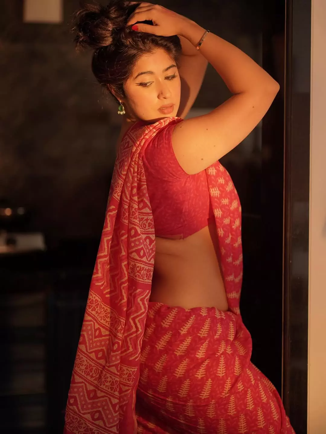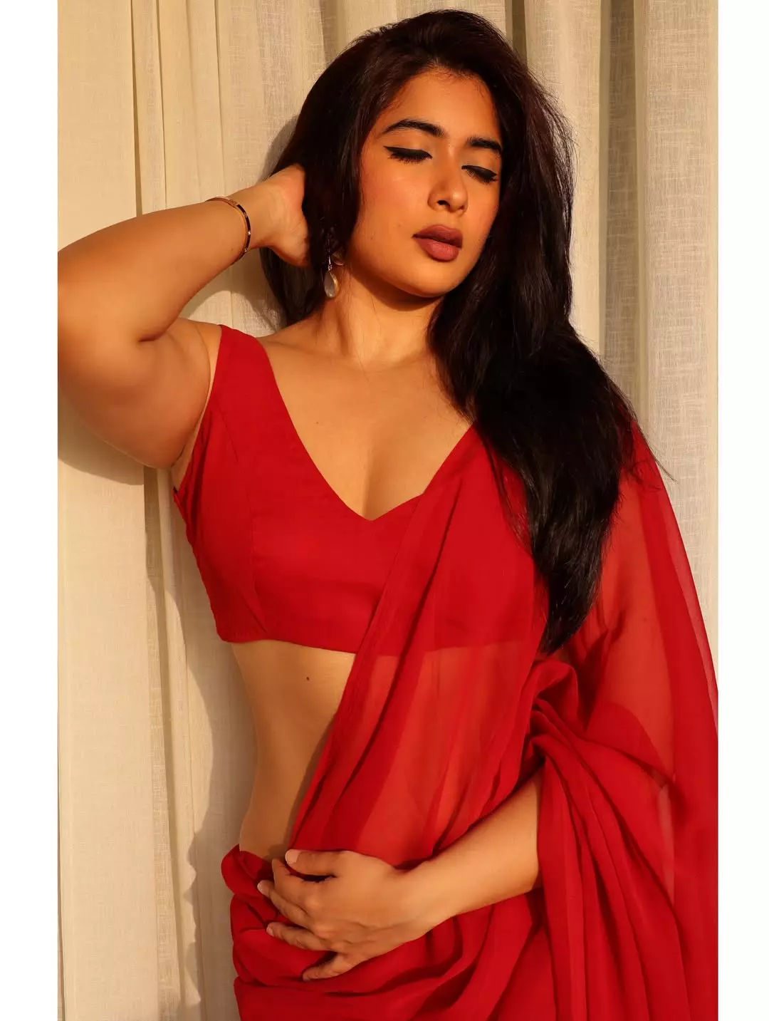 Nikita Sharma Dazzles In Bold Red-Saree Ensemble