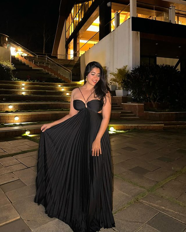 The actress is seen wearing the dress by Lace Made. She looked amazing in the dress.