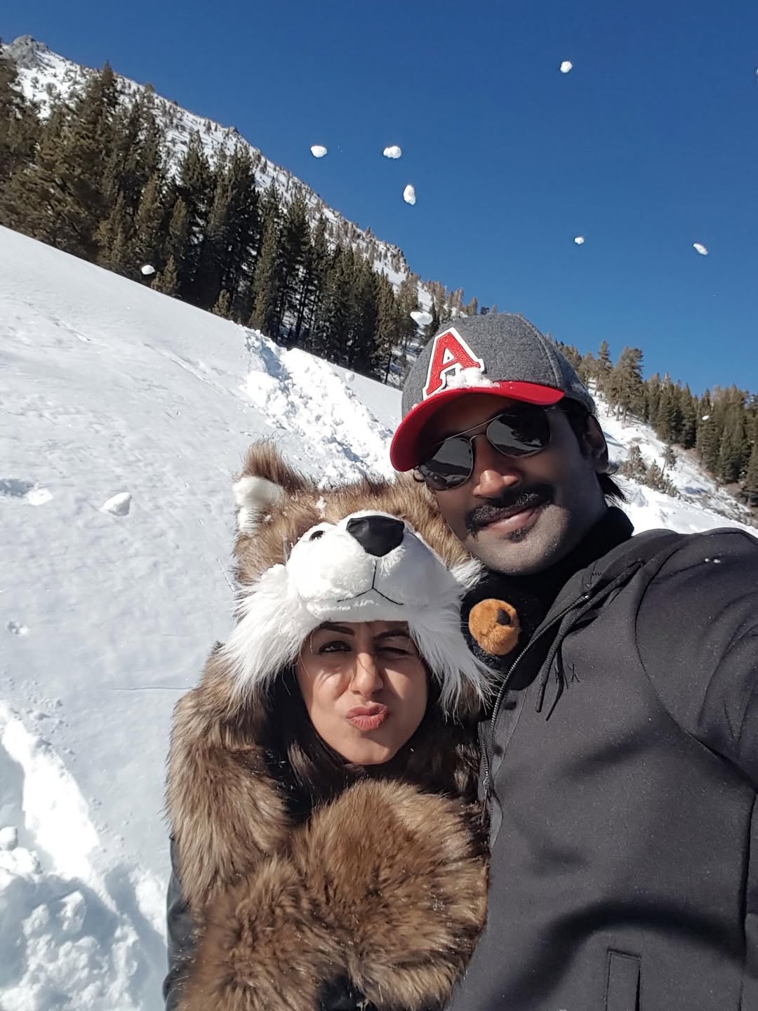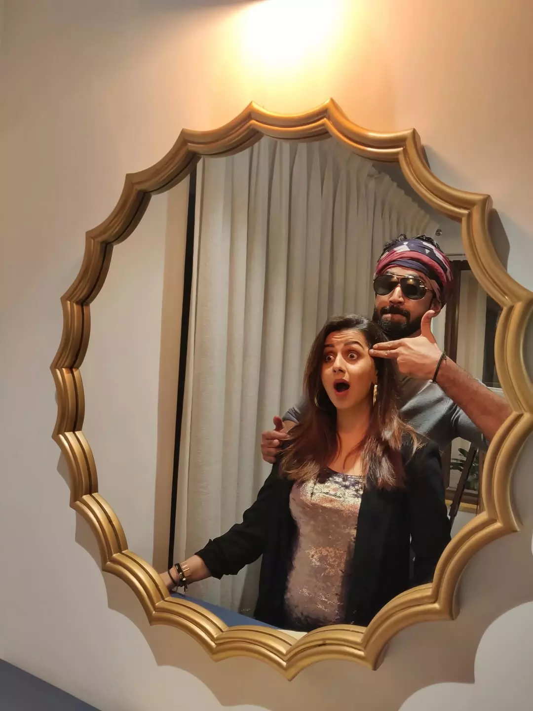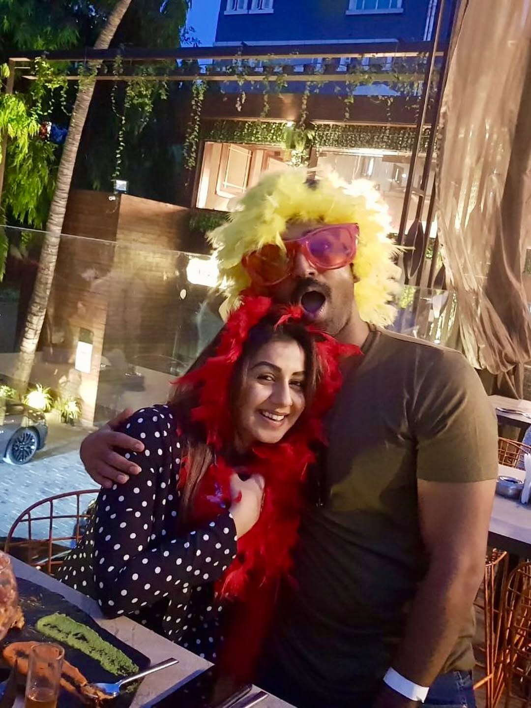 In the picture, Nikki is seen laughing with her eyes closed, clearly enjoying the moment, while Aadhi holds her gently from behind.