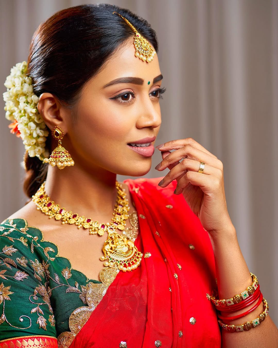 Nivetha has a special talent for nailing ethnic wear. Whether it's Sankranti, Diwali or Ugadi, she always shows up in sarees that celebrate Indian culture. Her recent post continues that tradition, where she looked radiant in a soft-toned green saree.